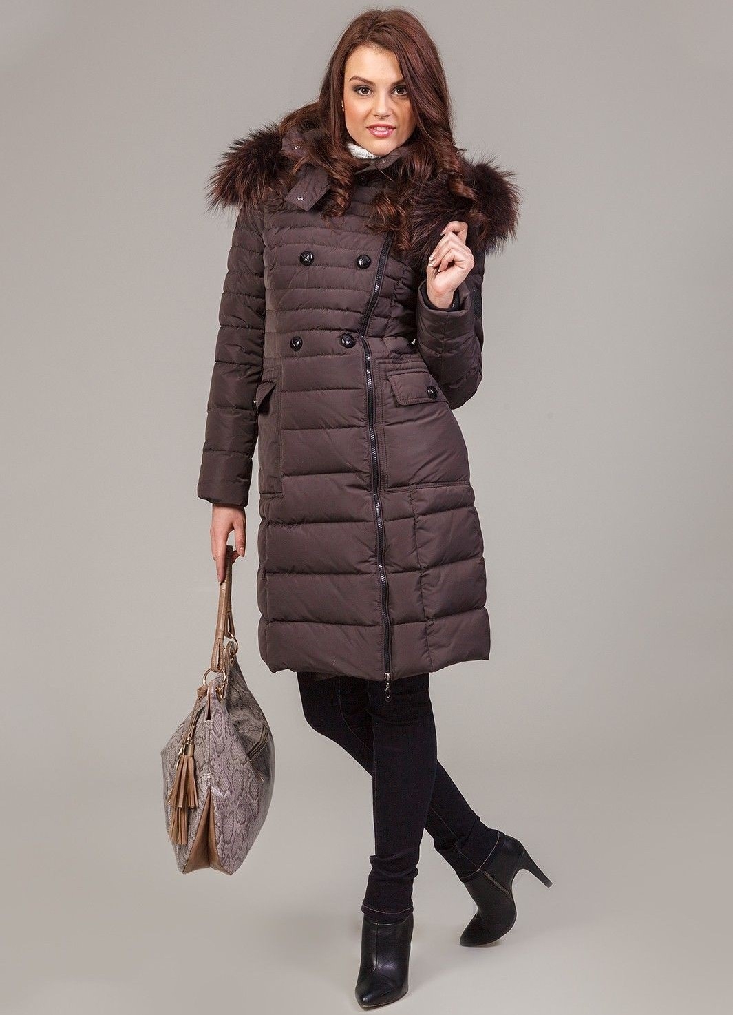 Пуховик серо коричневый