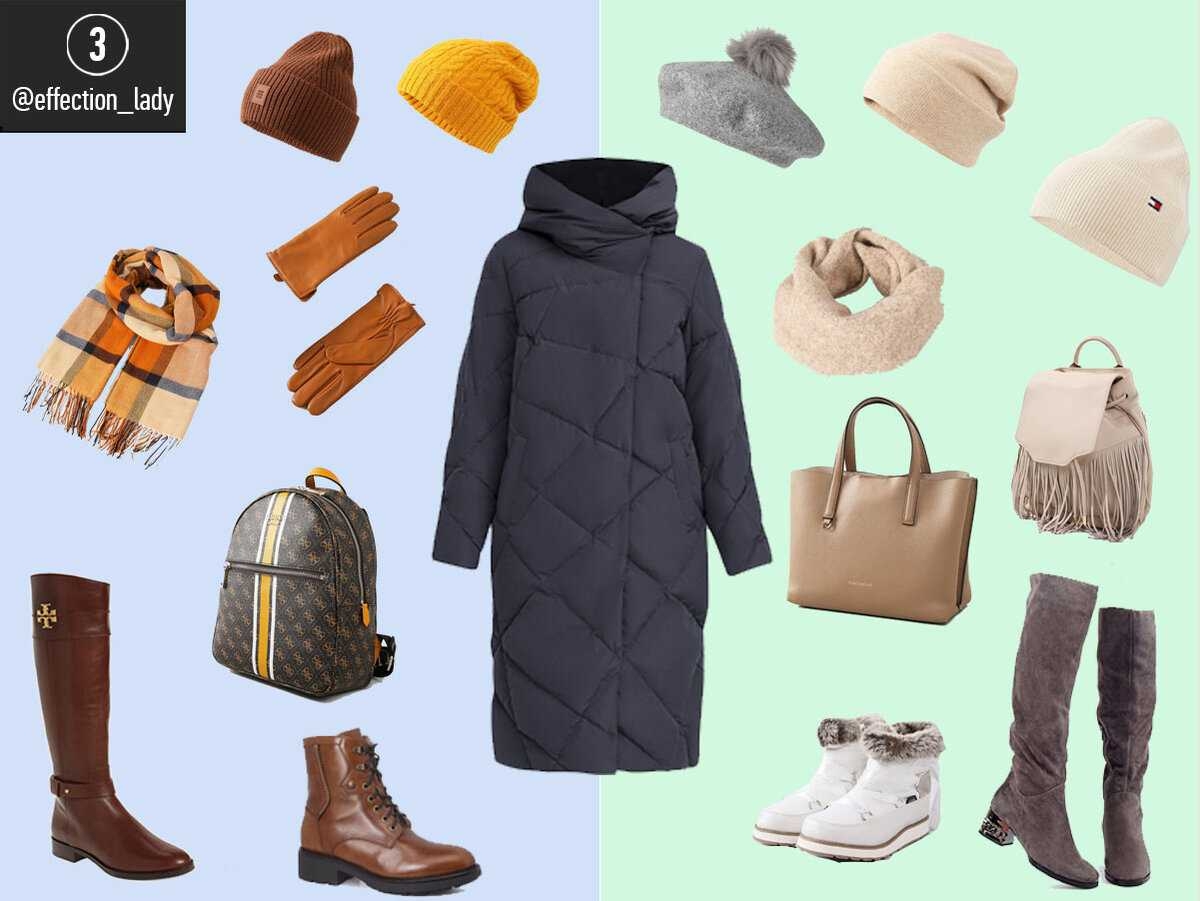 Аксессуары к коричневому пуховику