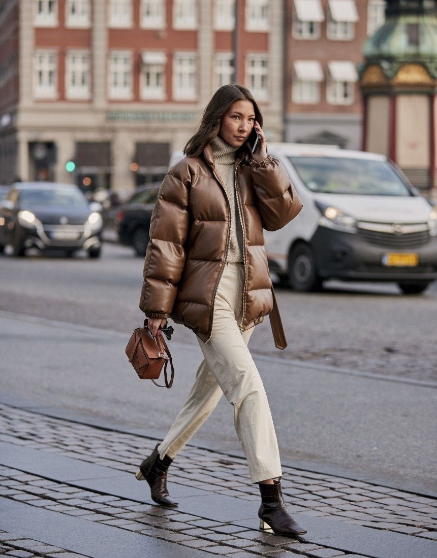 Коричневый пуховик streetstyle