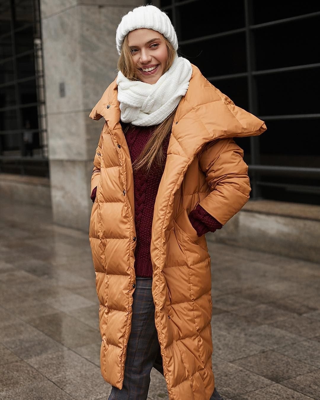 В пуховике модель мода стиль
