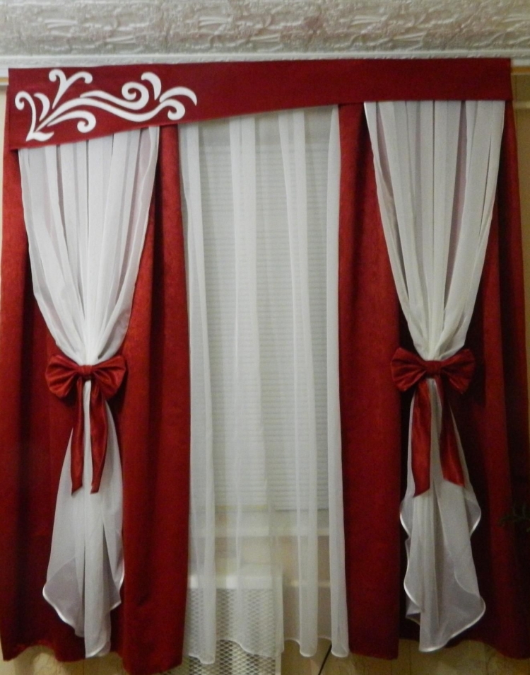 Красная тюль и черные шторы