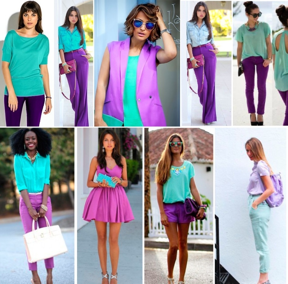 Сочетание голубого и фиолетового в одежде