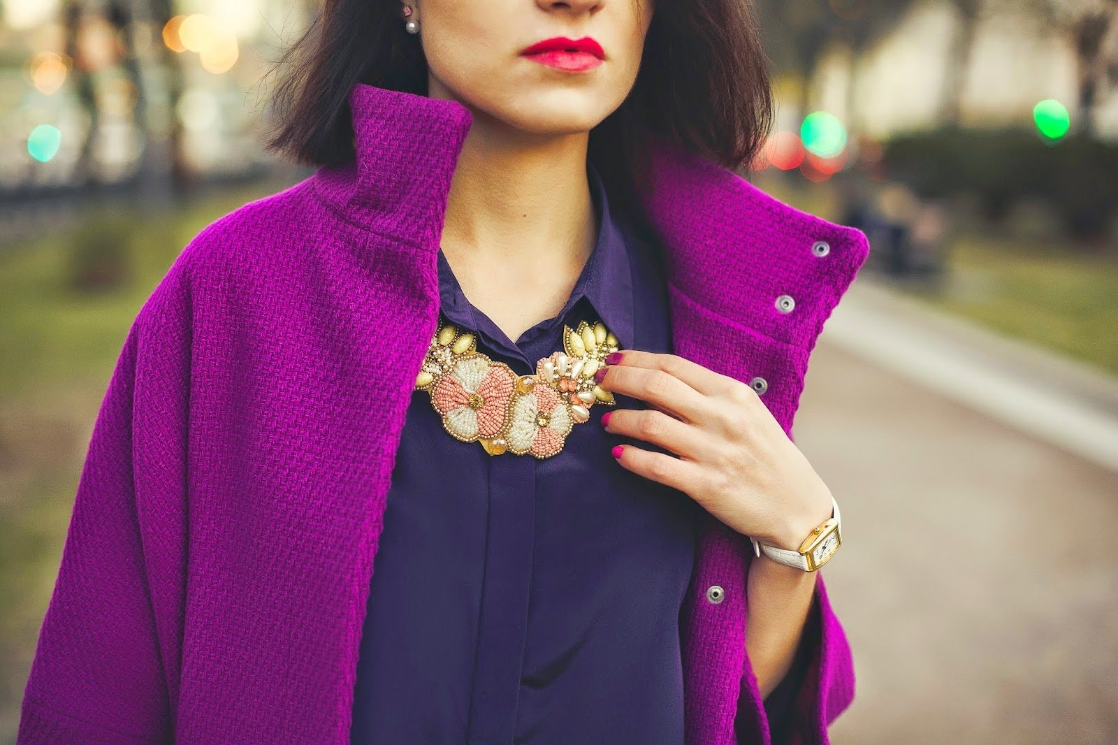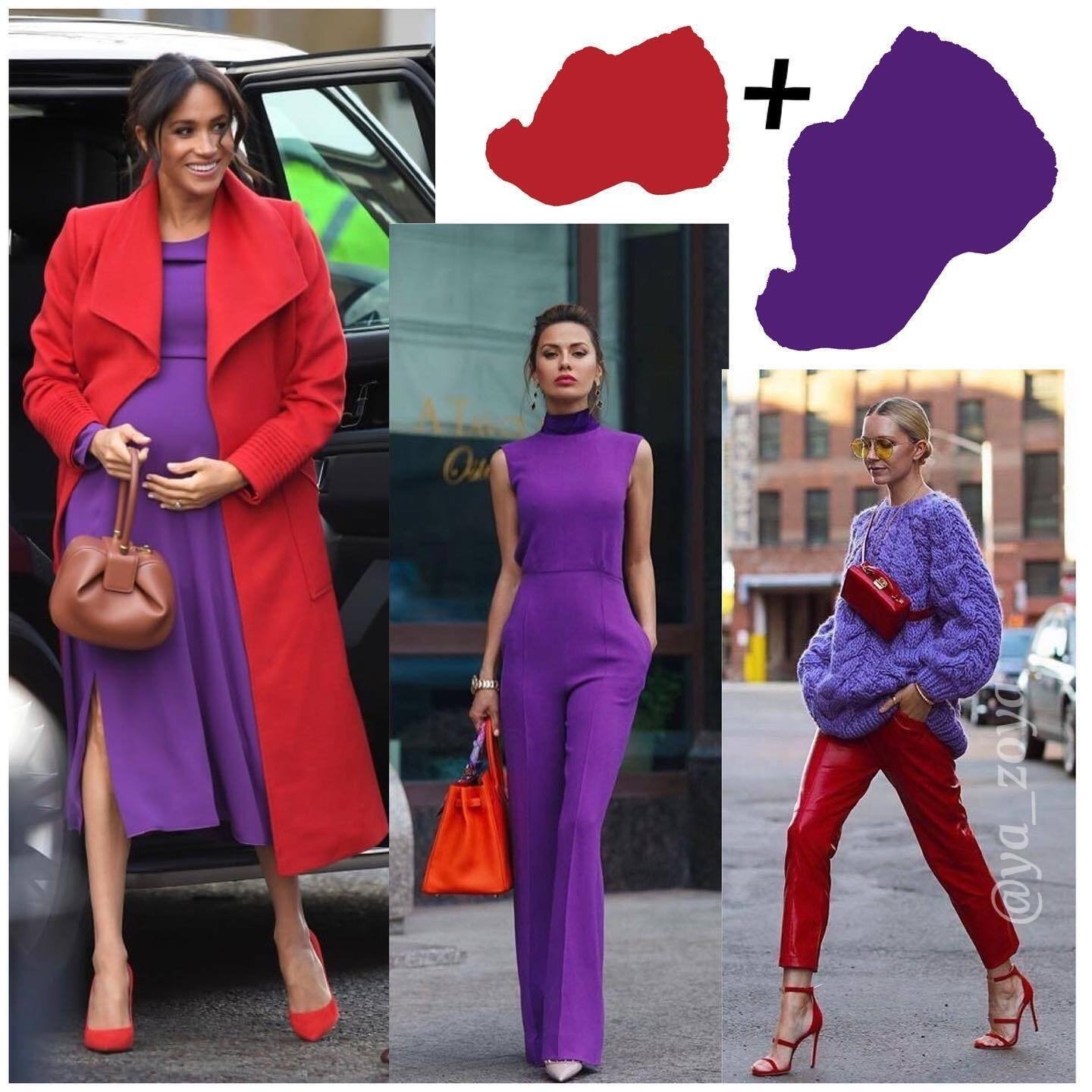 Сочетание красного и фиолетового в одежде
