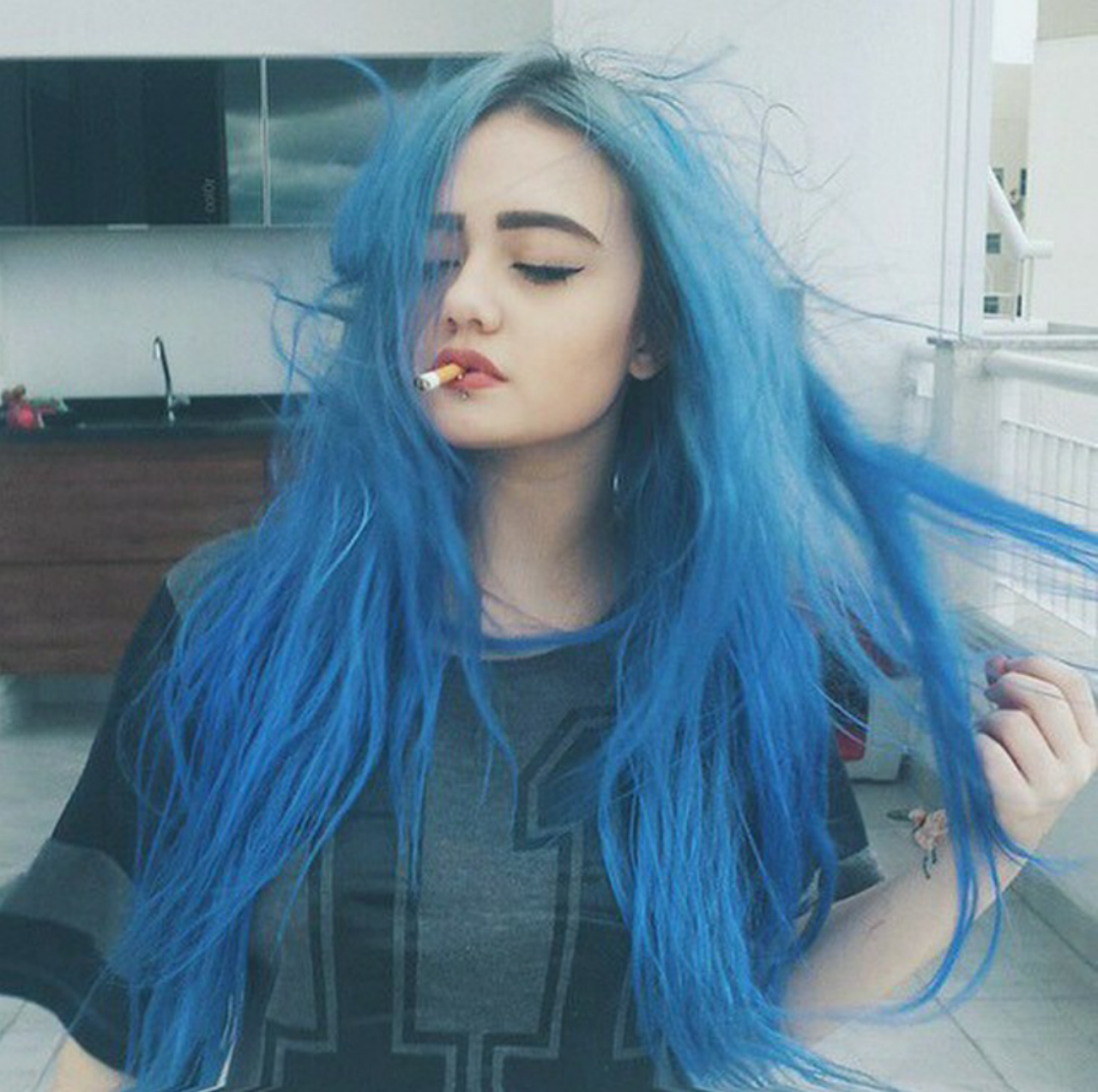 Синий цвет волос у девушек