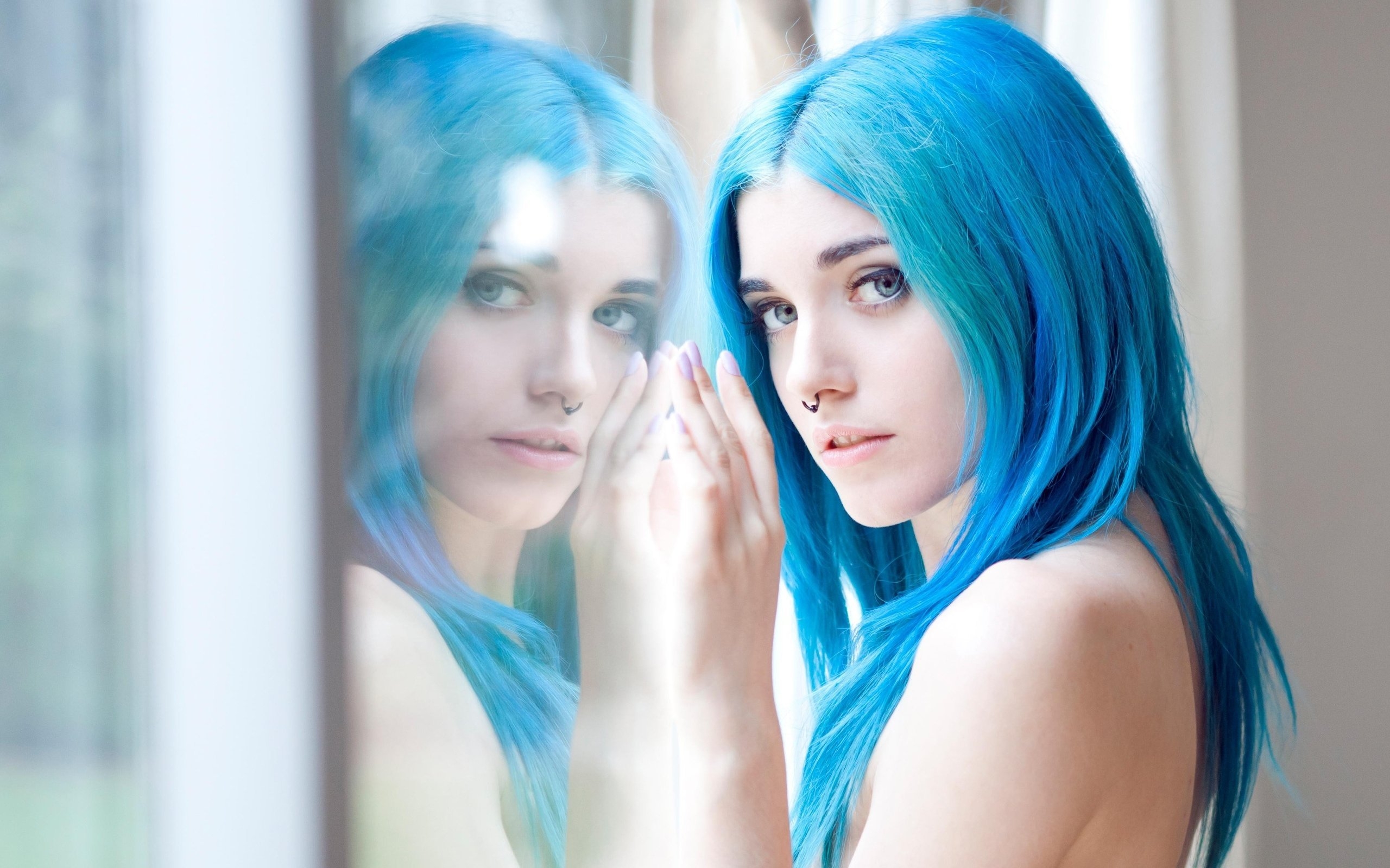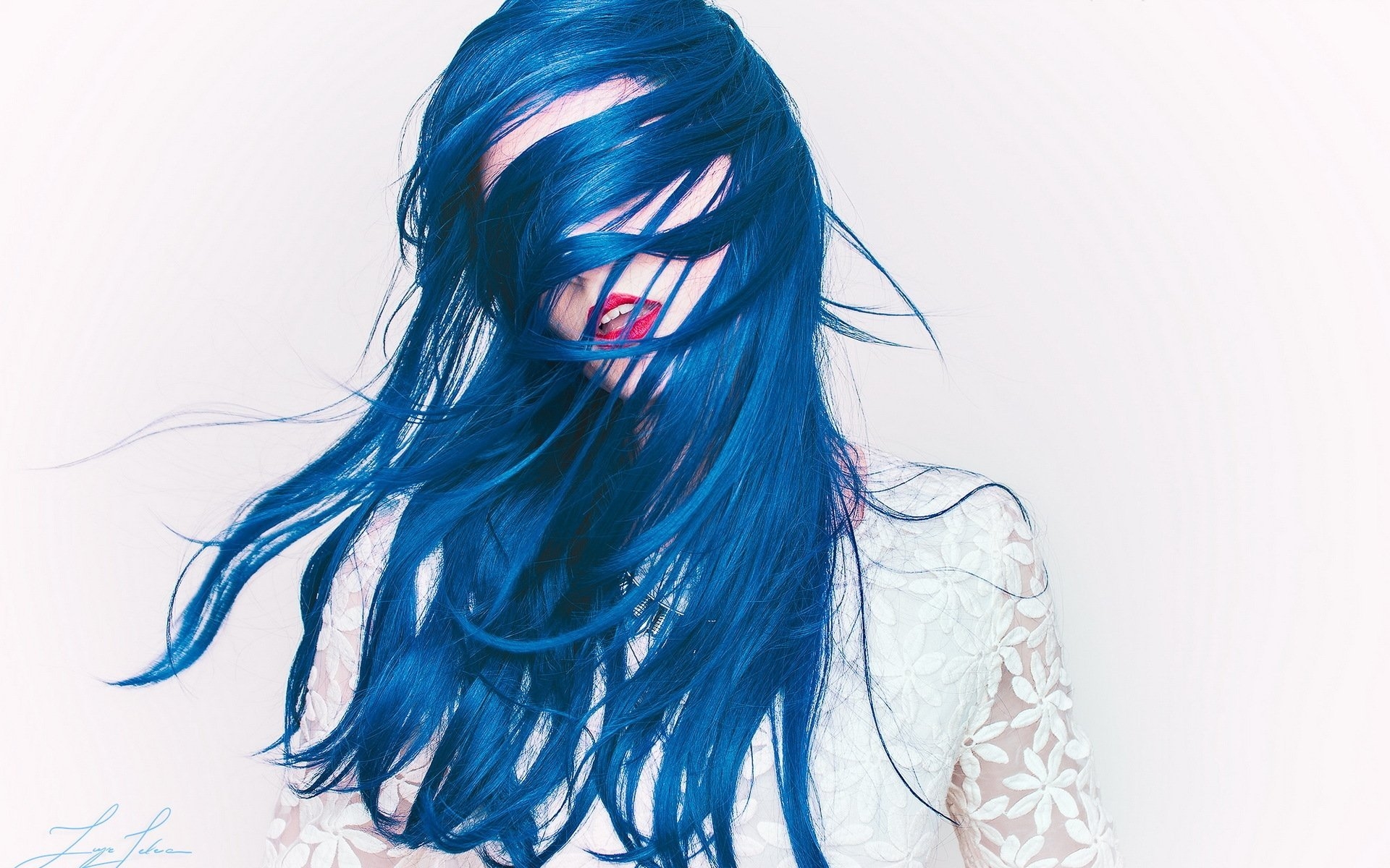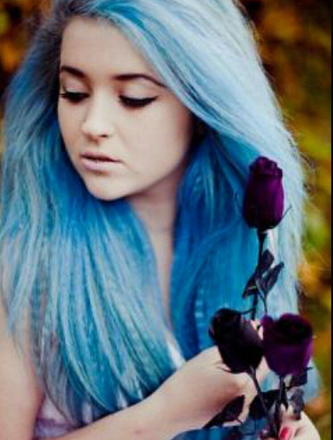 Синие волосы и голубые глаза