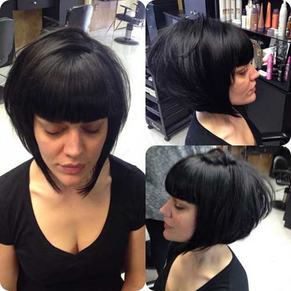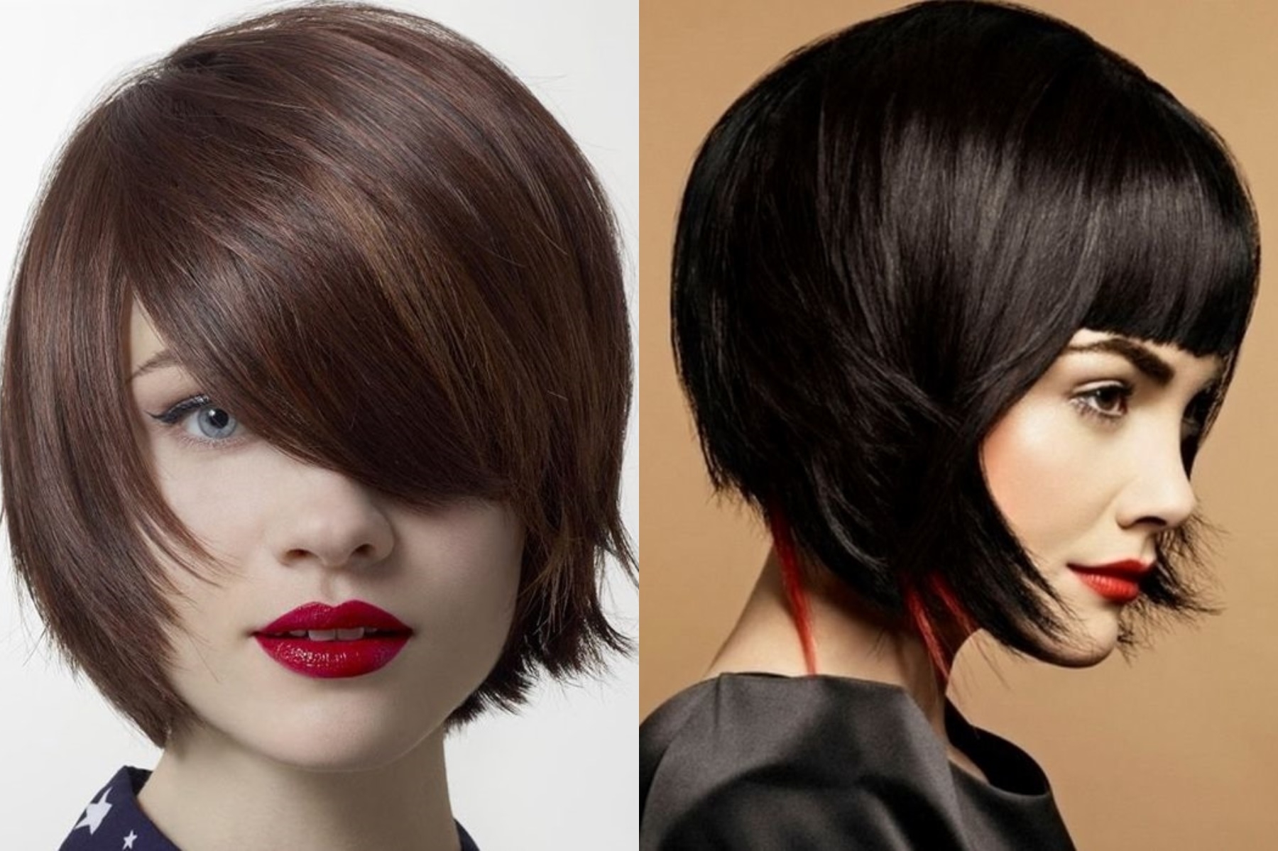 Стрижка Боб с асимметрией на средние волосы с челкой