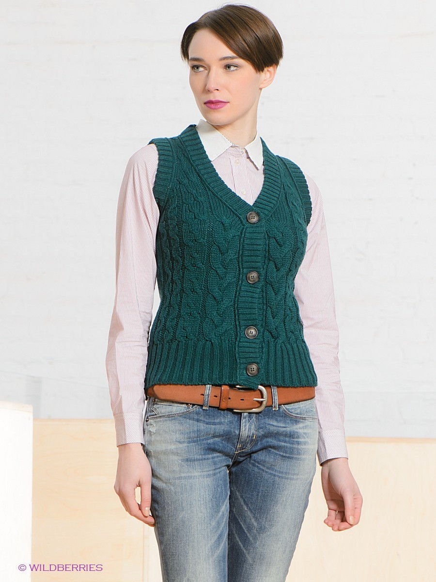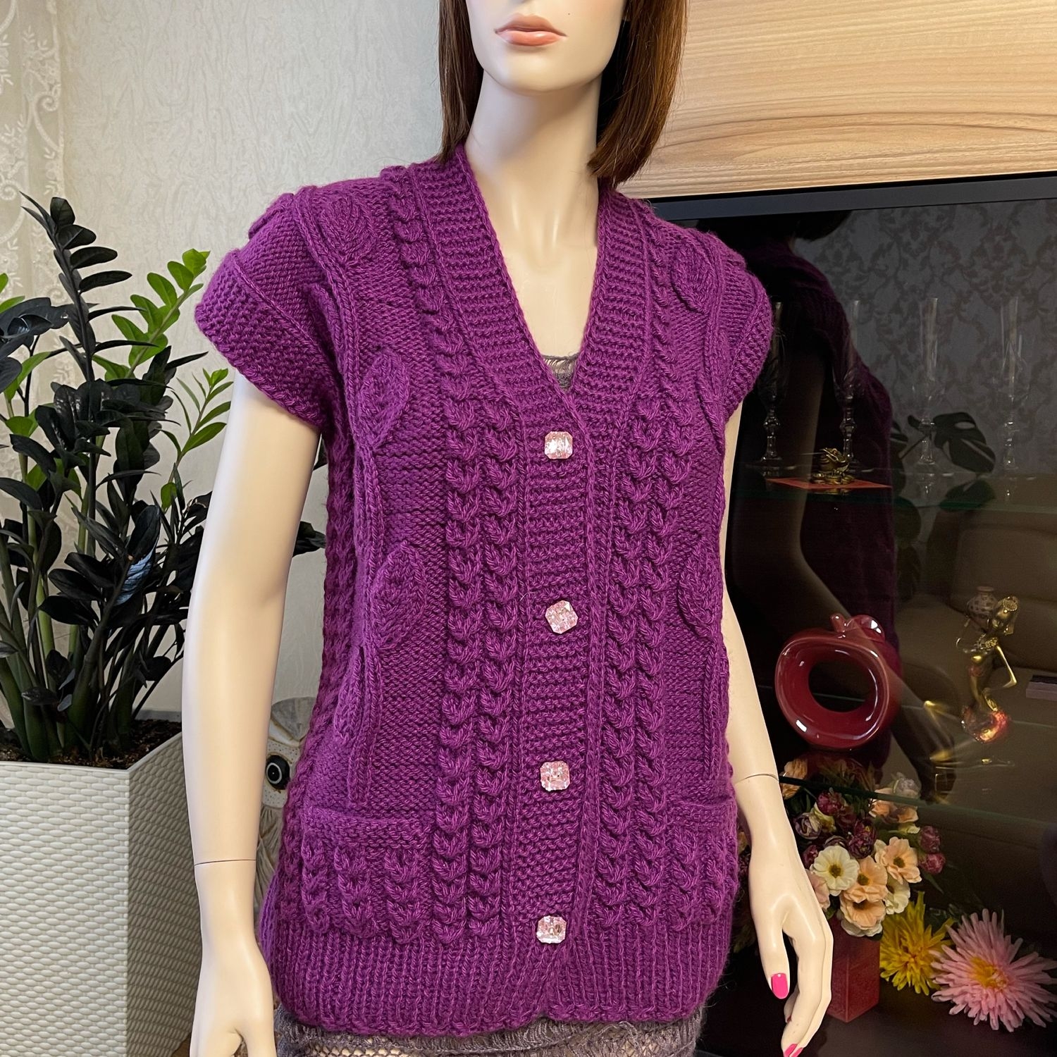 Жилет женский, вязаный (на пуговицах, р р 46 54) Россия