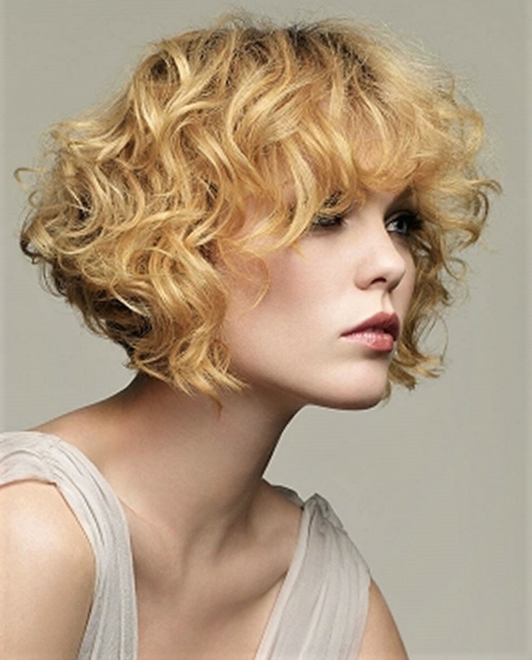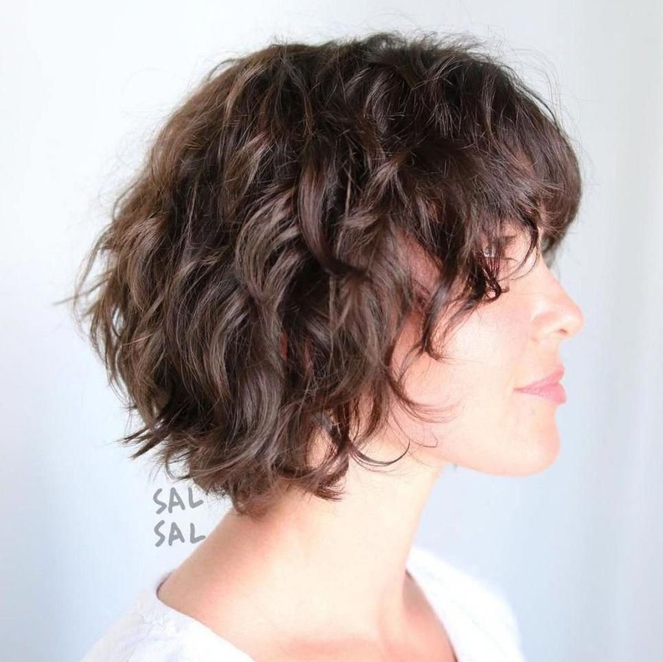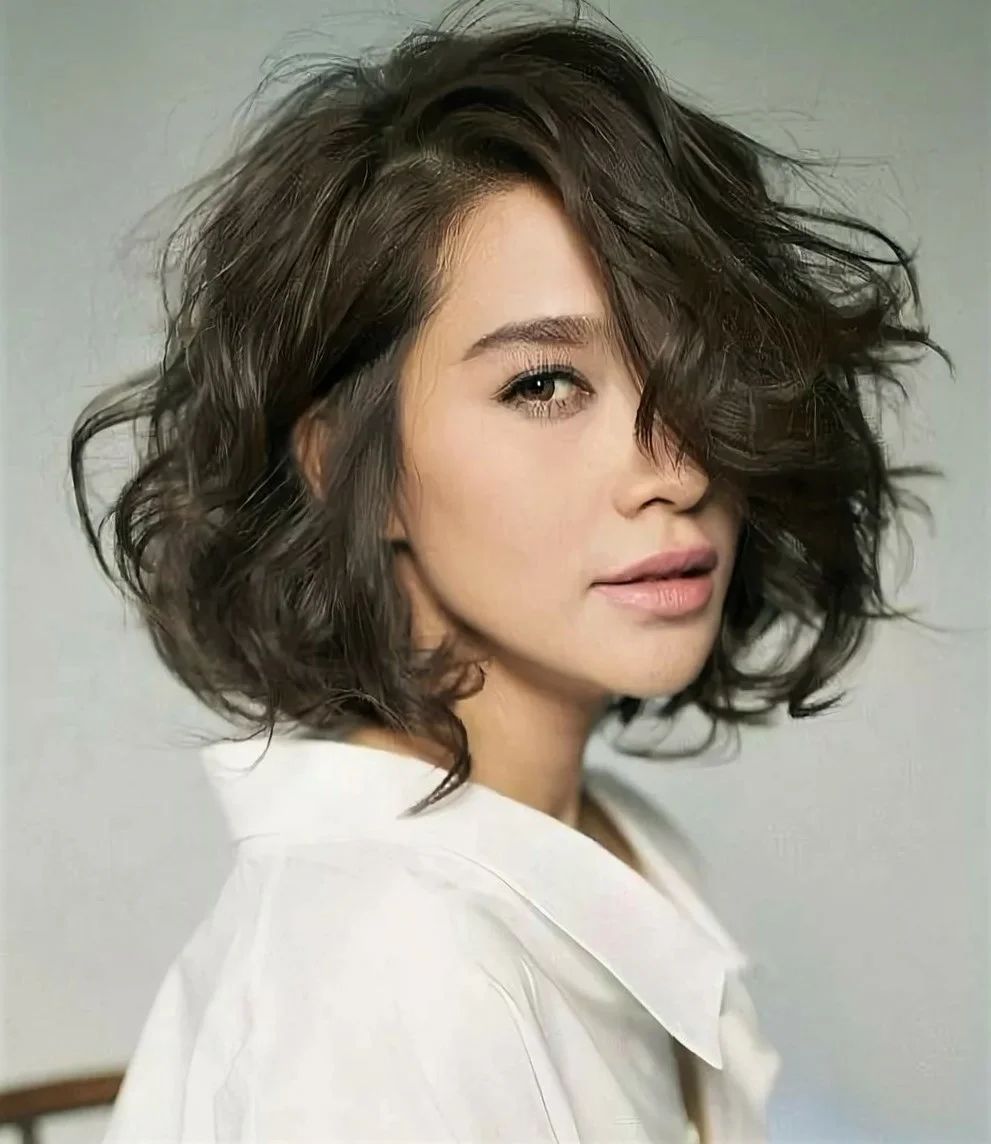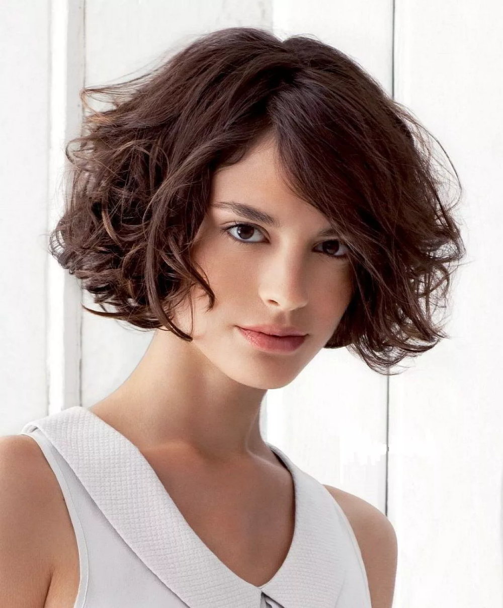 Стрижка Боб-каре на короткие волнистые волосы с челкой