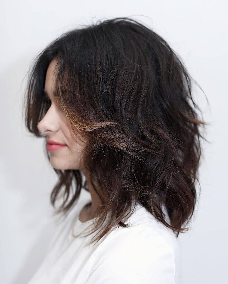 Градуированный Боб на средние волосы с челкой на волнистые волосы