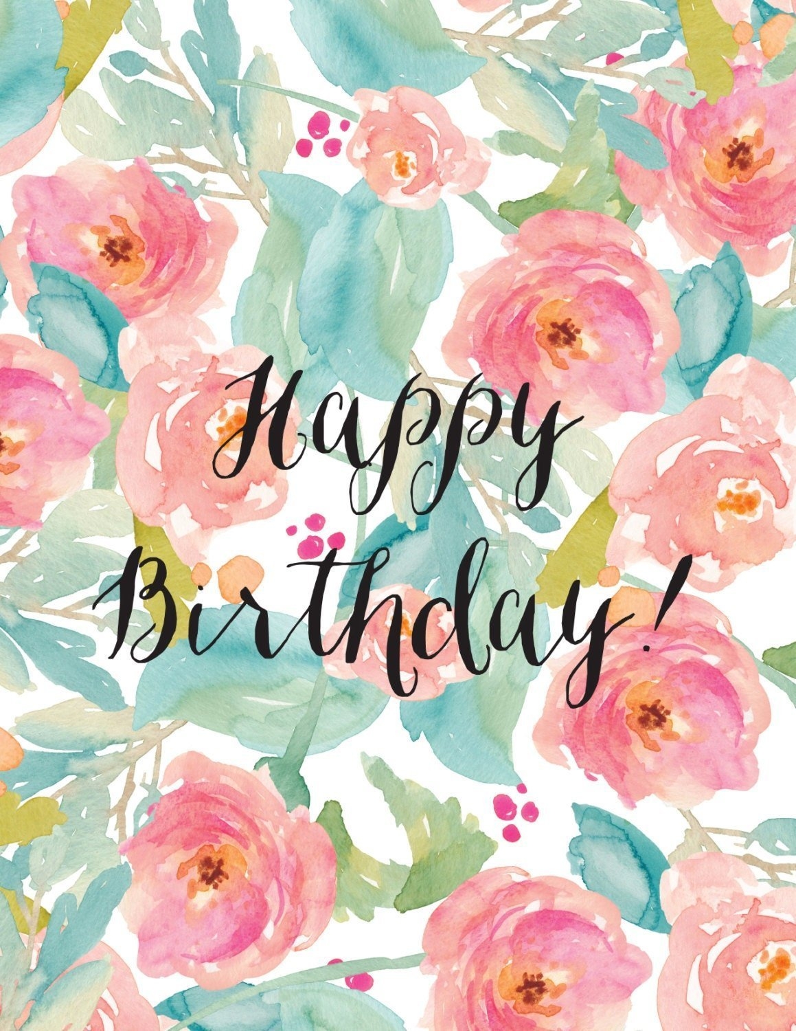 С днём рождения Акварельная открытка