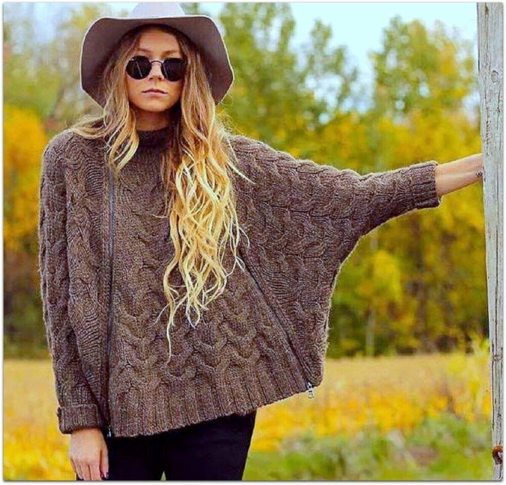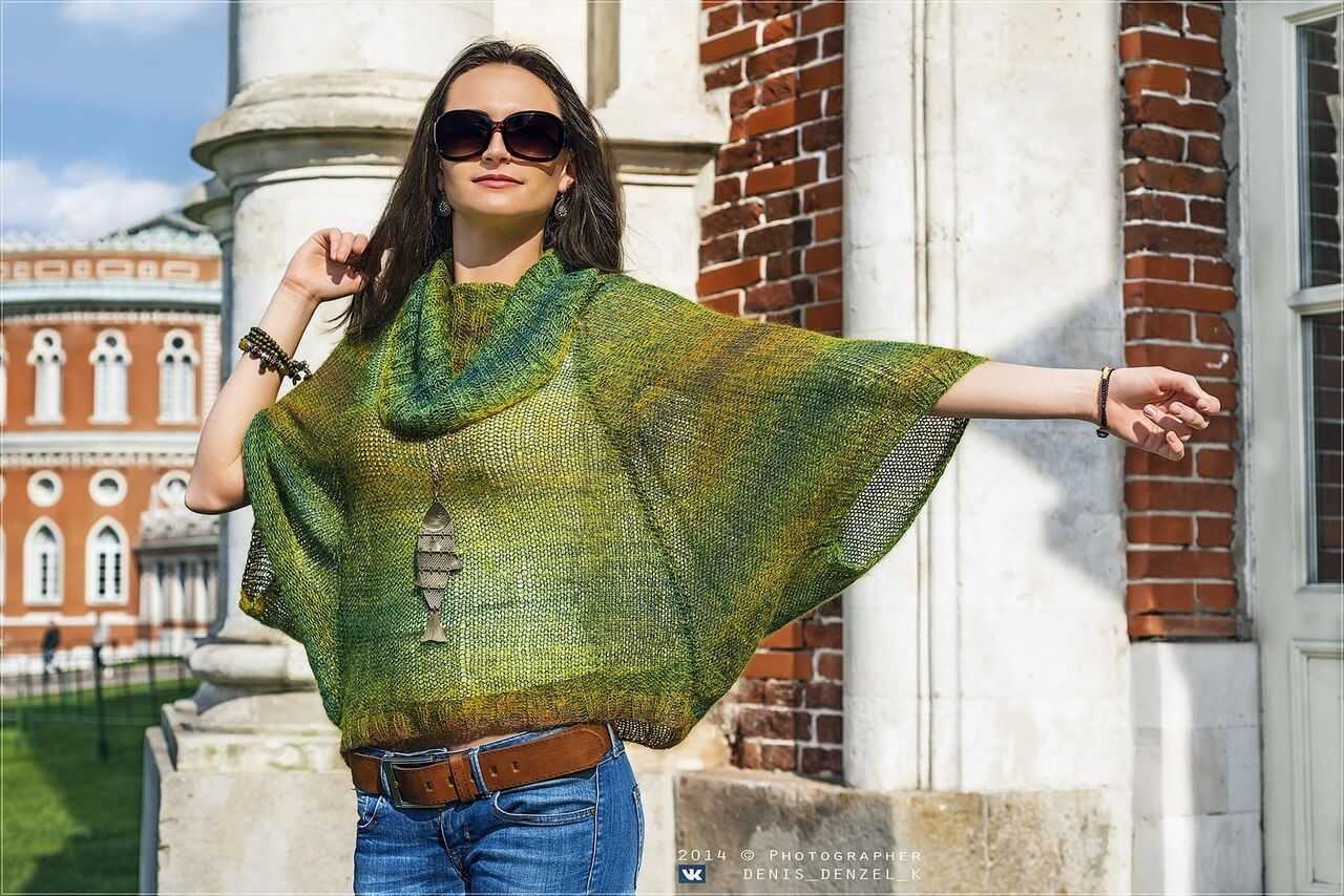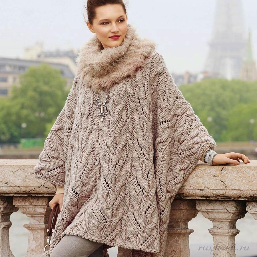 Вязаное пончо спицами для женщин
