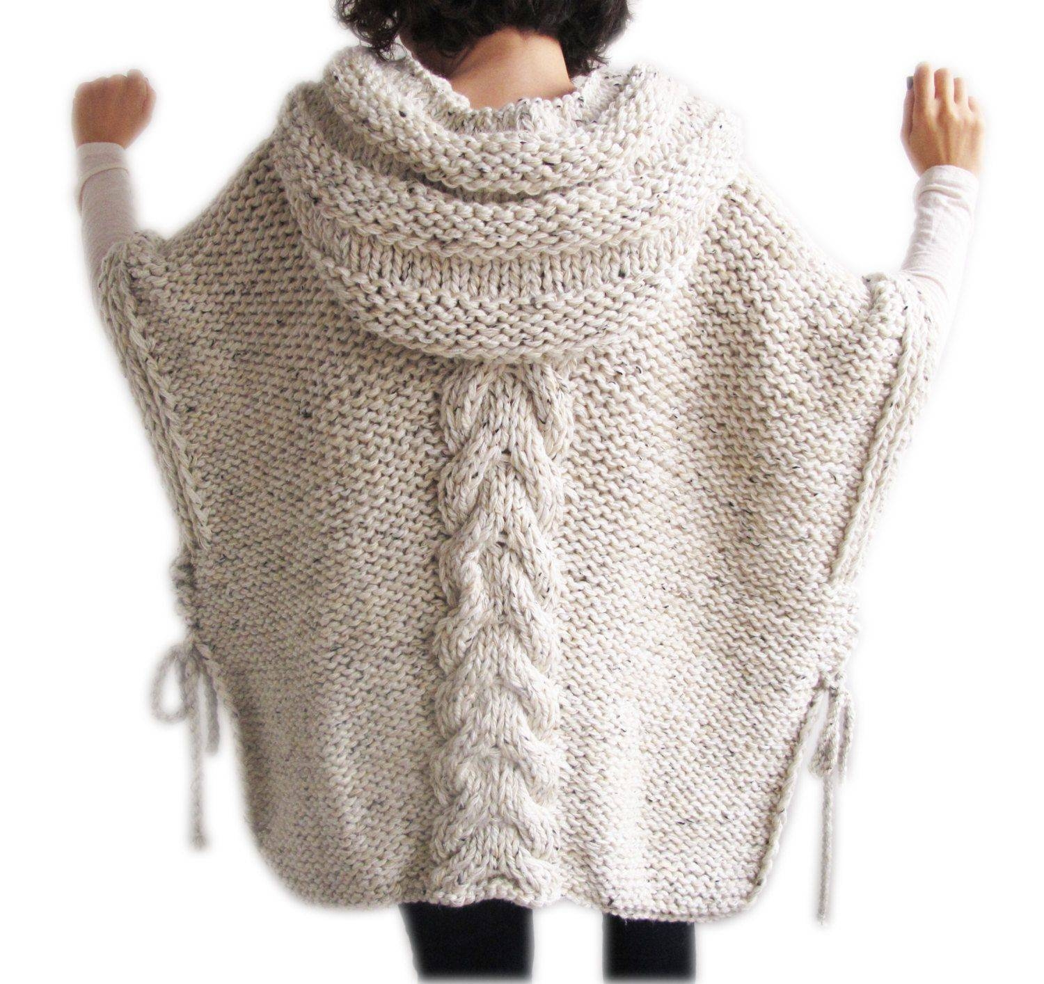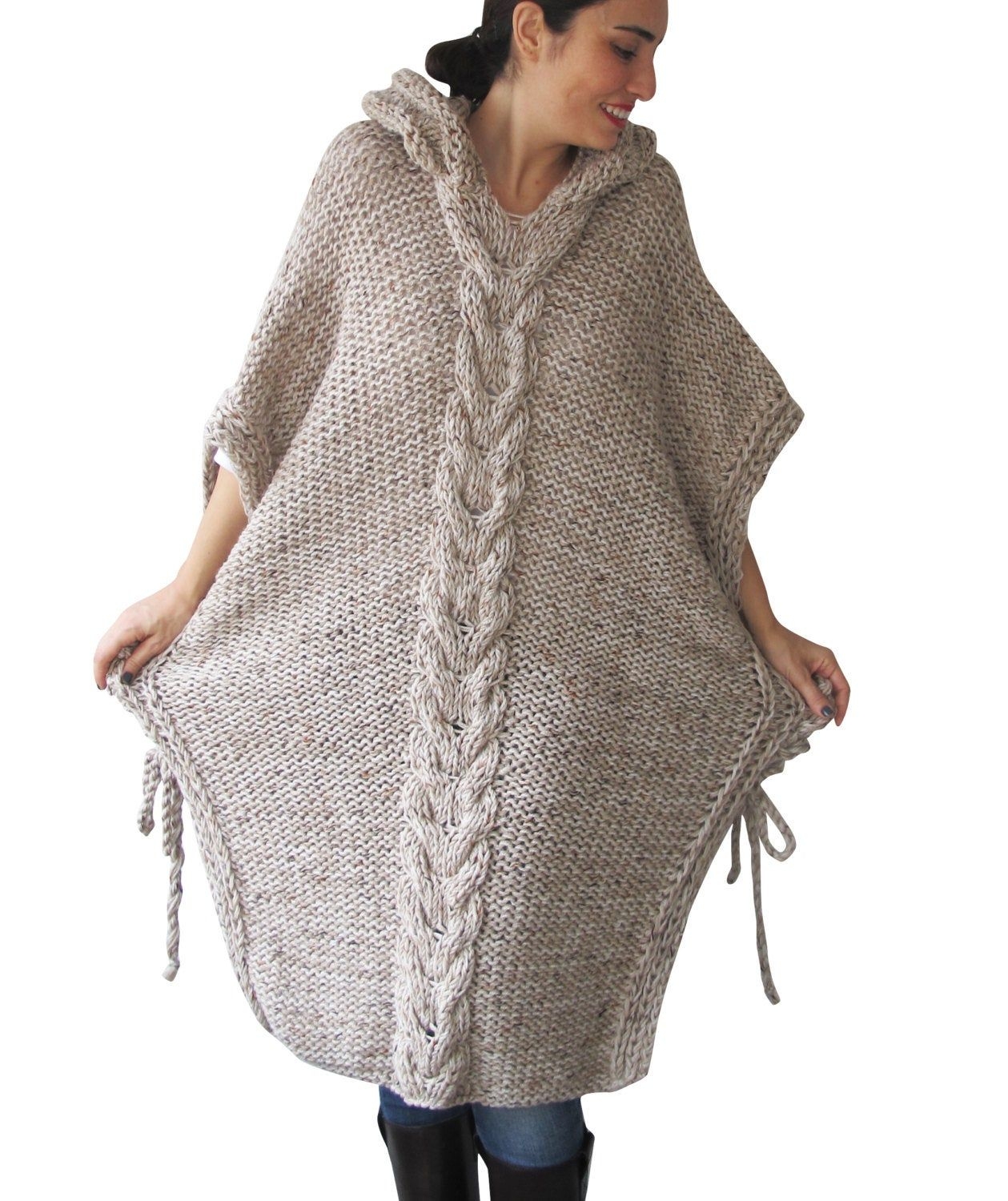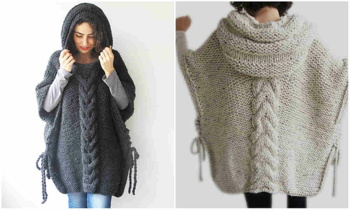 Вязаное пончо с капюшоном