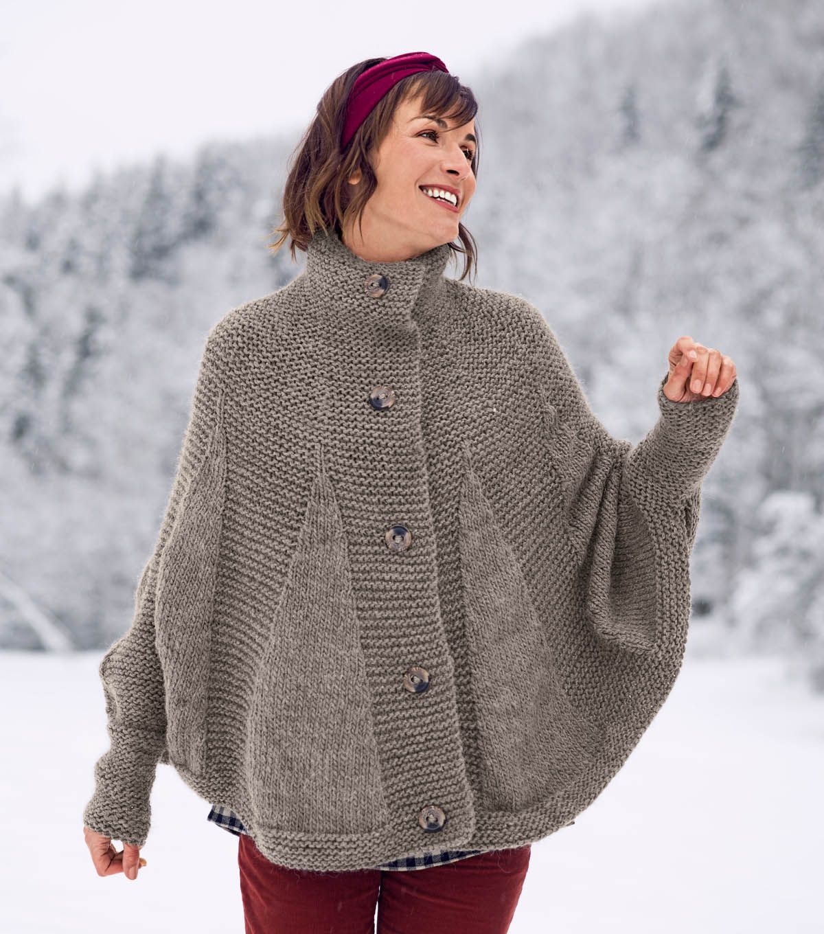 Теплая накидка спицами
