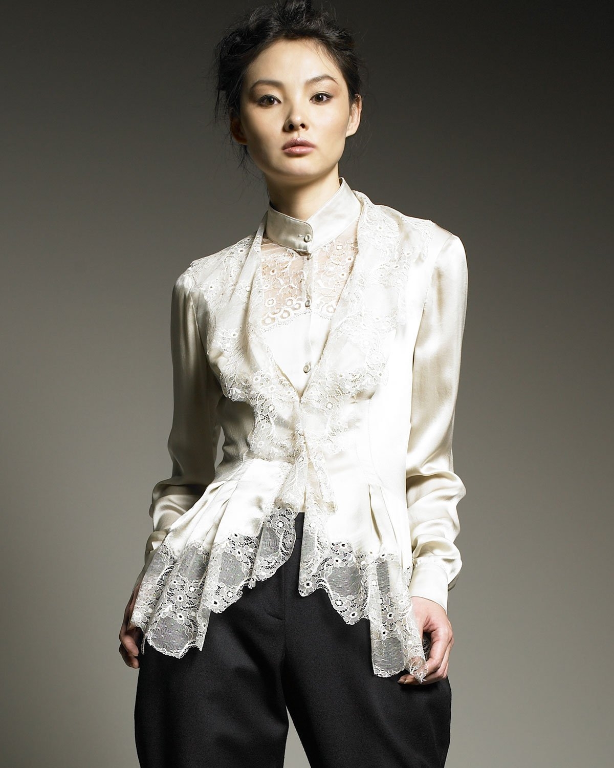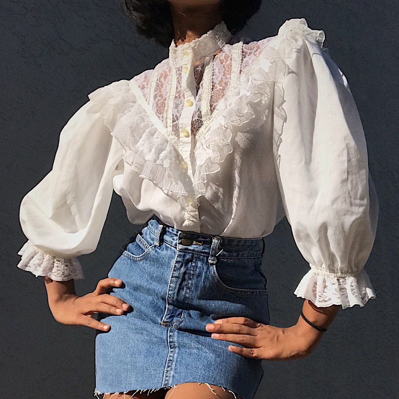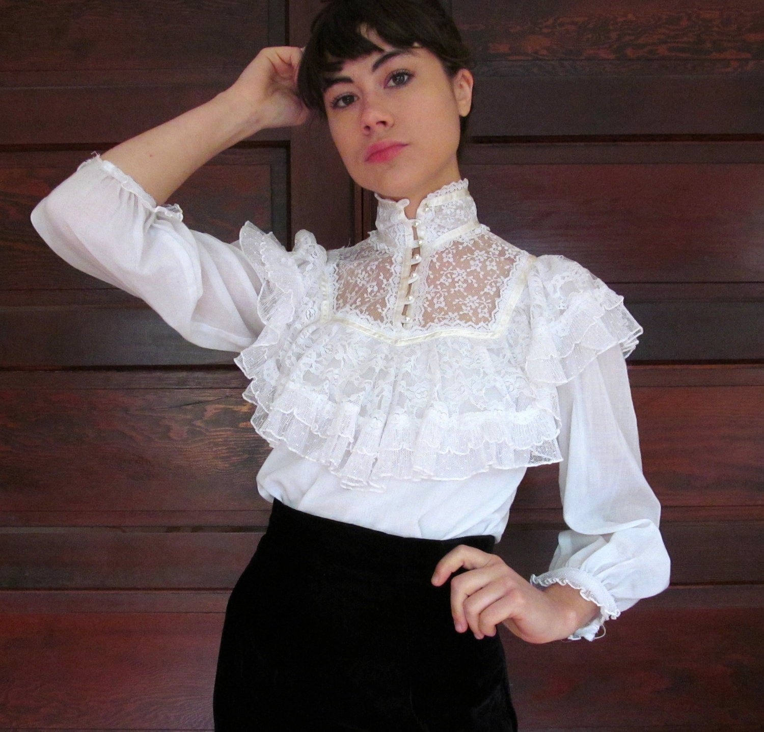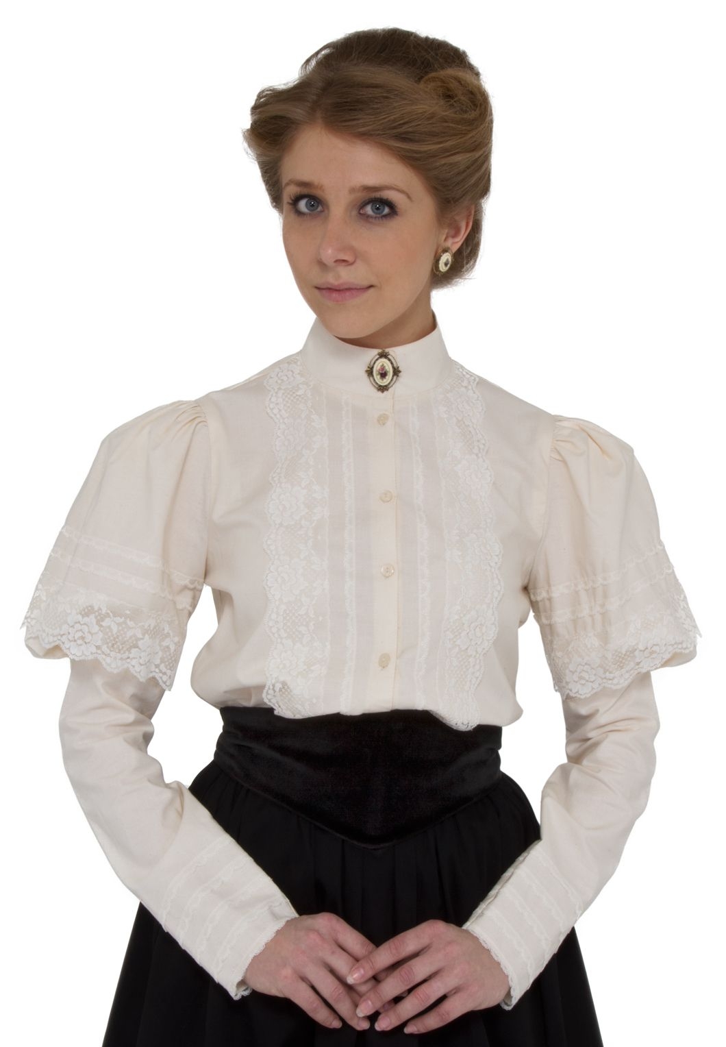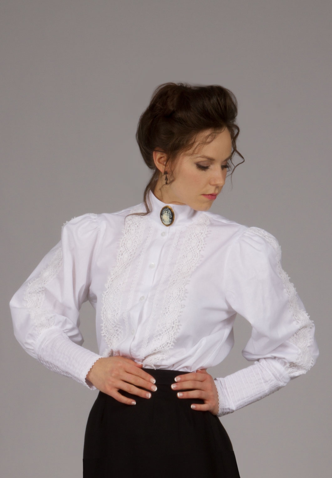 Девушка в блузке викторианской белой