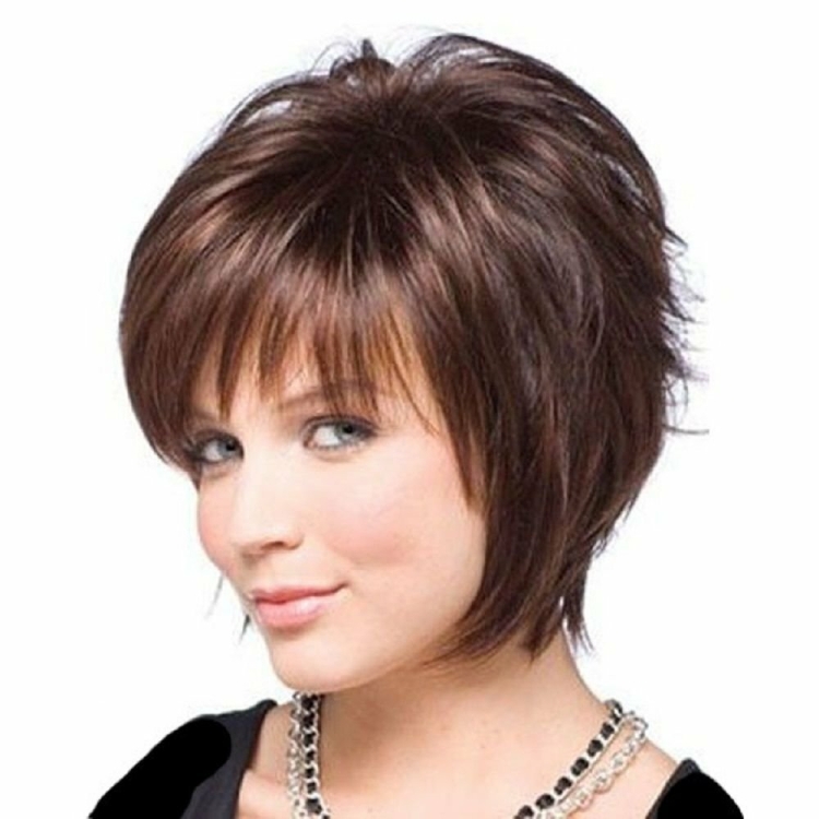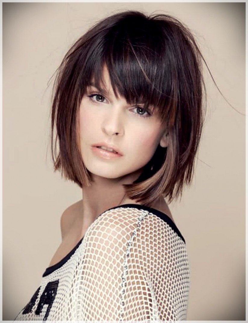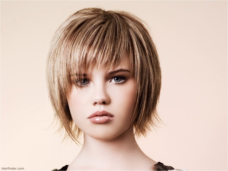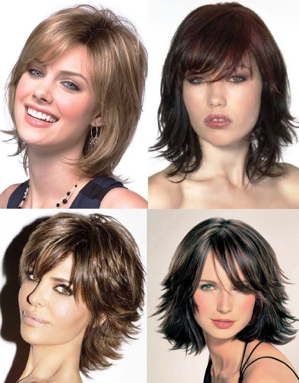 Стрижка каре Каскад на средние волосы с челкой для круглого лица