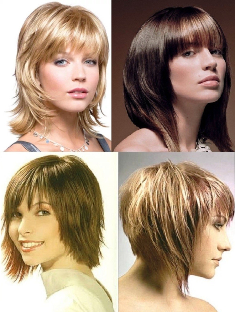 Стрижка Каскад с челкой на волосы средней длины волосы