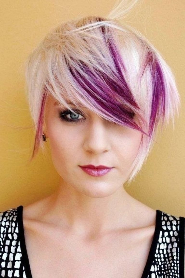 Короткая стрижка с фиолетовыми прядями
