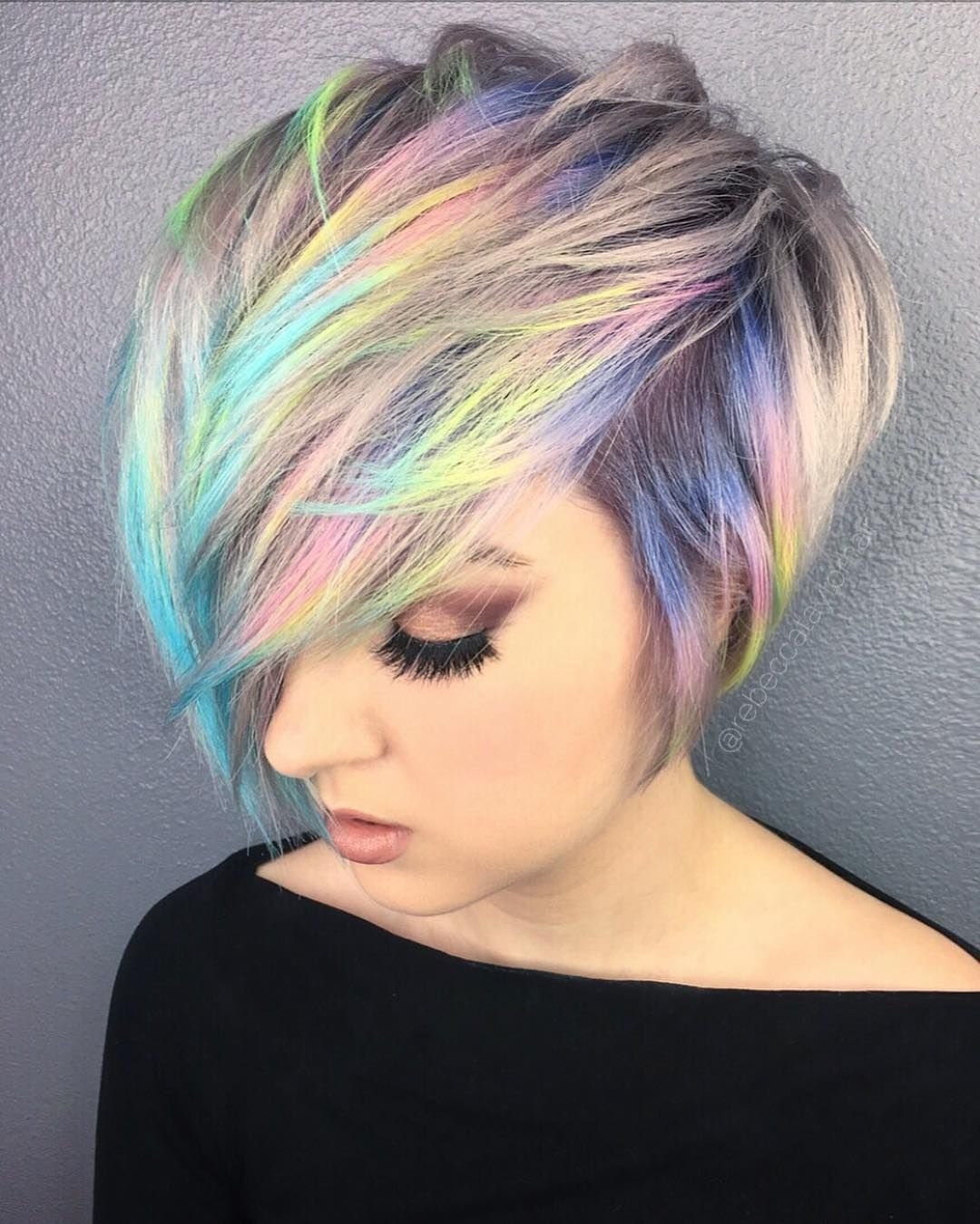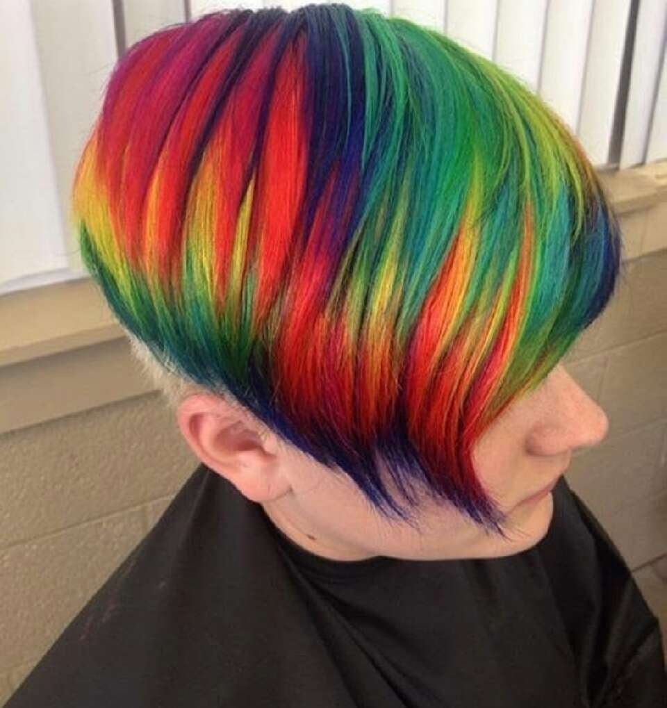 Радужное окрашивание на короткие волосы
