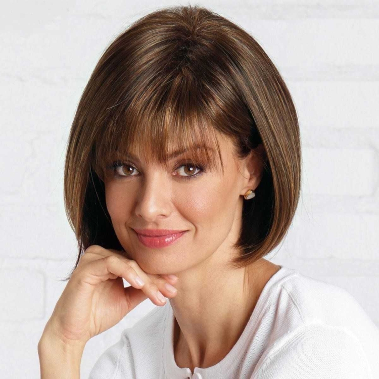Стрижки женские 2022 на средние с челкой для круглого лица после 40