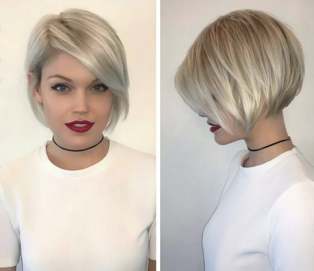 Боб с удлинением на короткие волосы и объемом на макушке