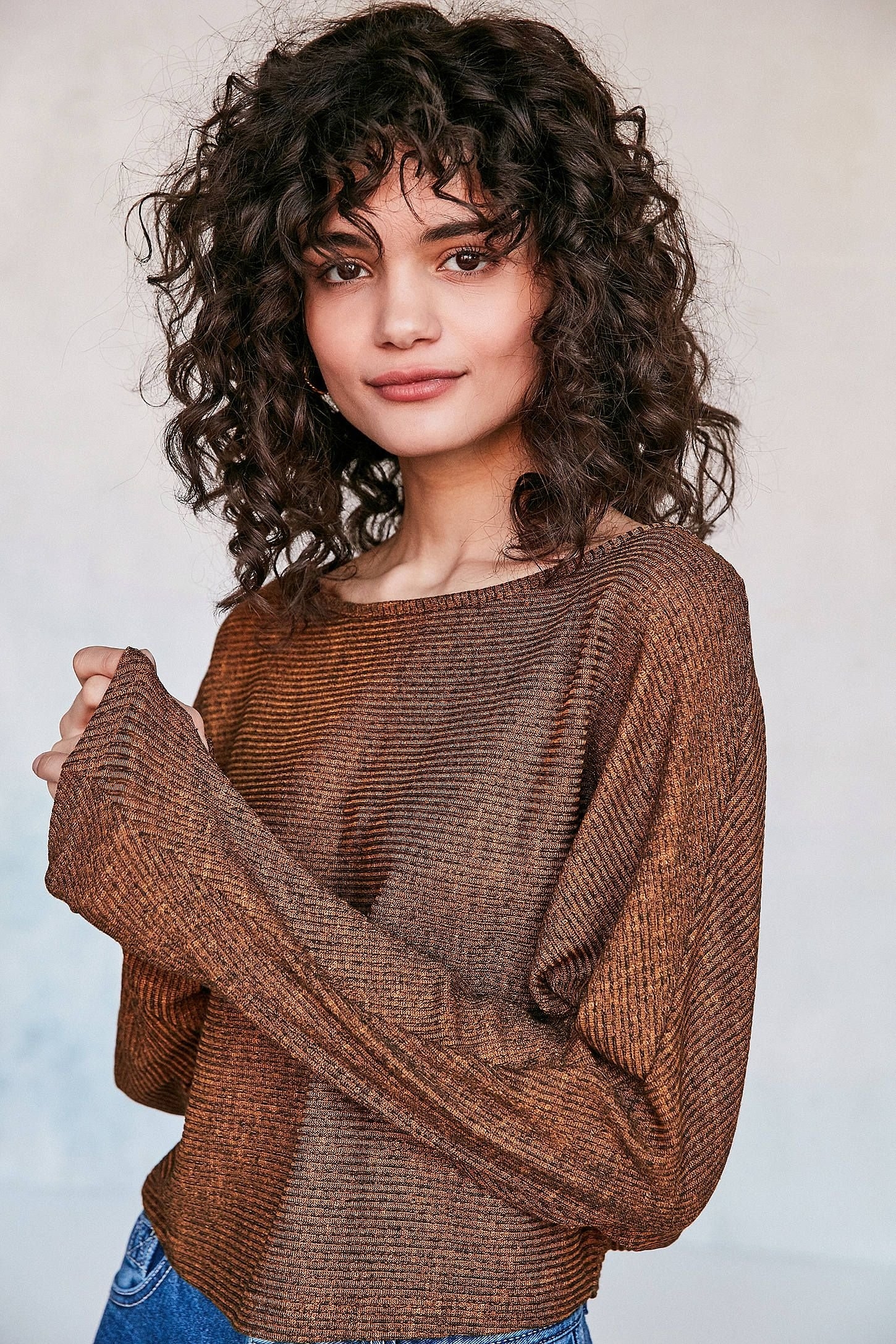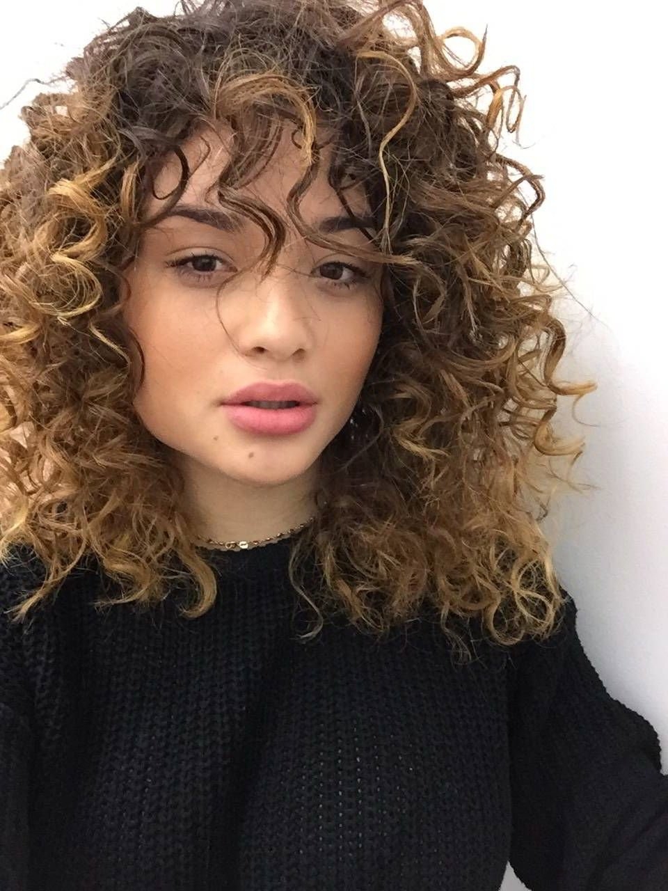 Длинная челка на вьющихся волосах