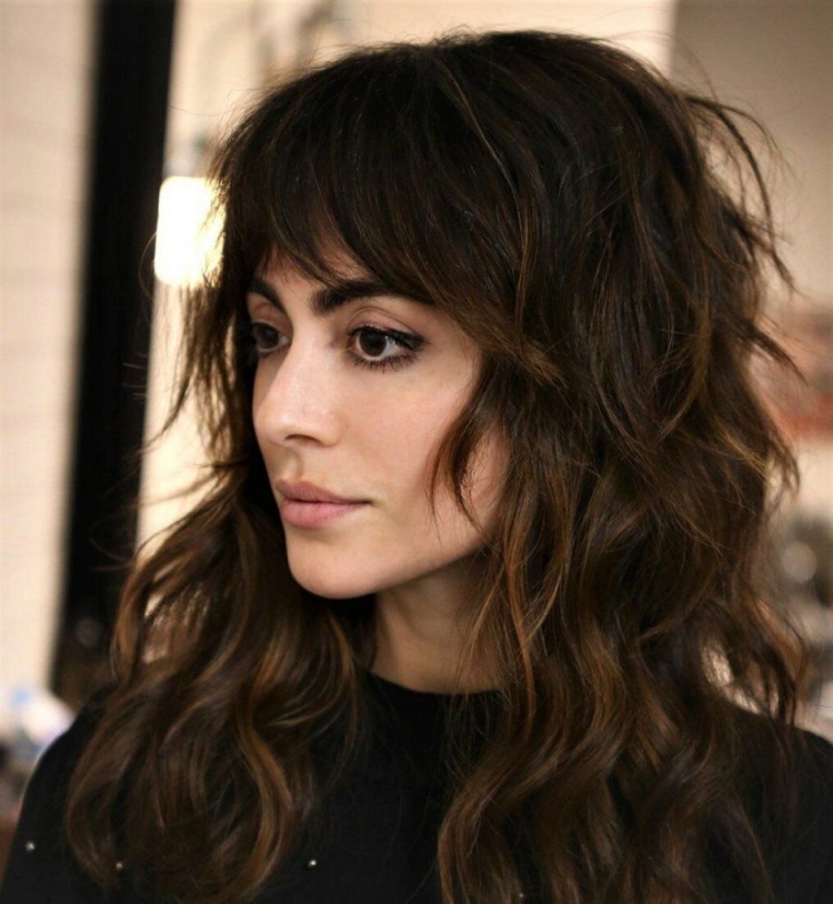 Удлиненная челка на волнистые волосы