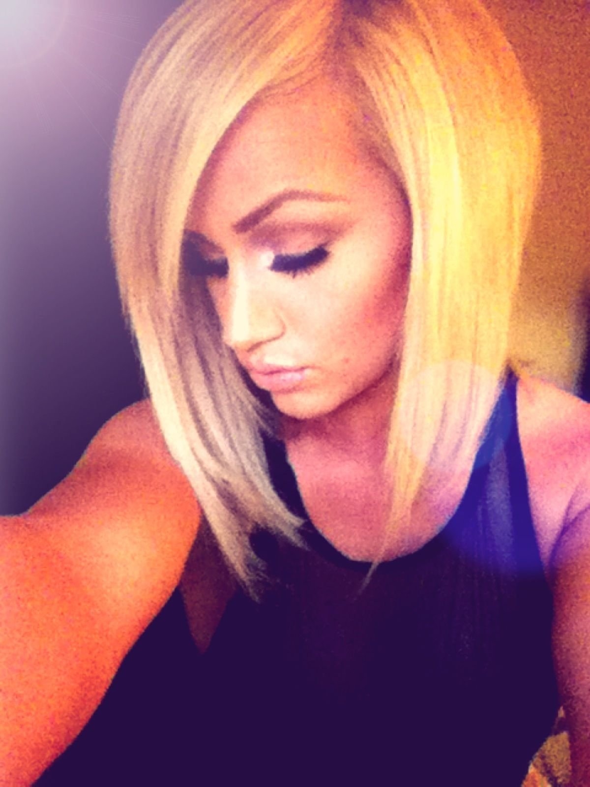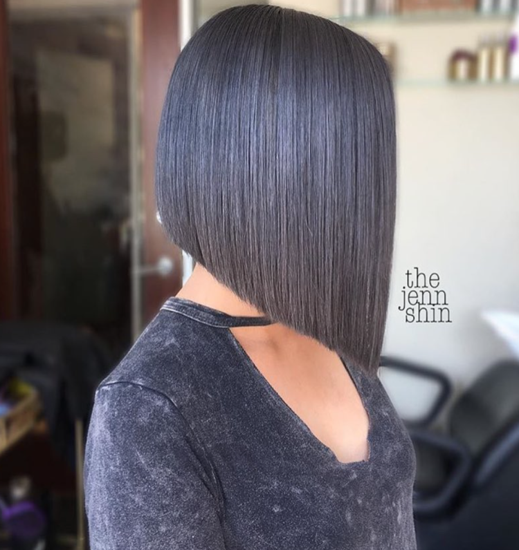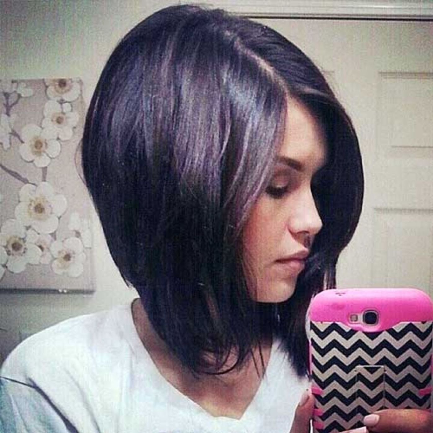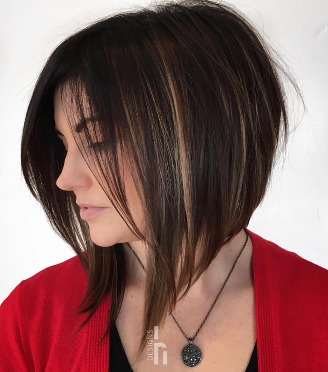 Каре-Боб с удлиненными передними прядями для круглого лица
