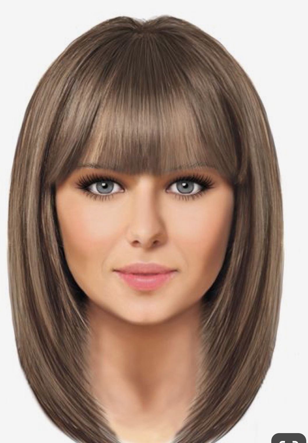 Стрижка для пухлого лица женская на средние волосы с челкой