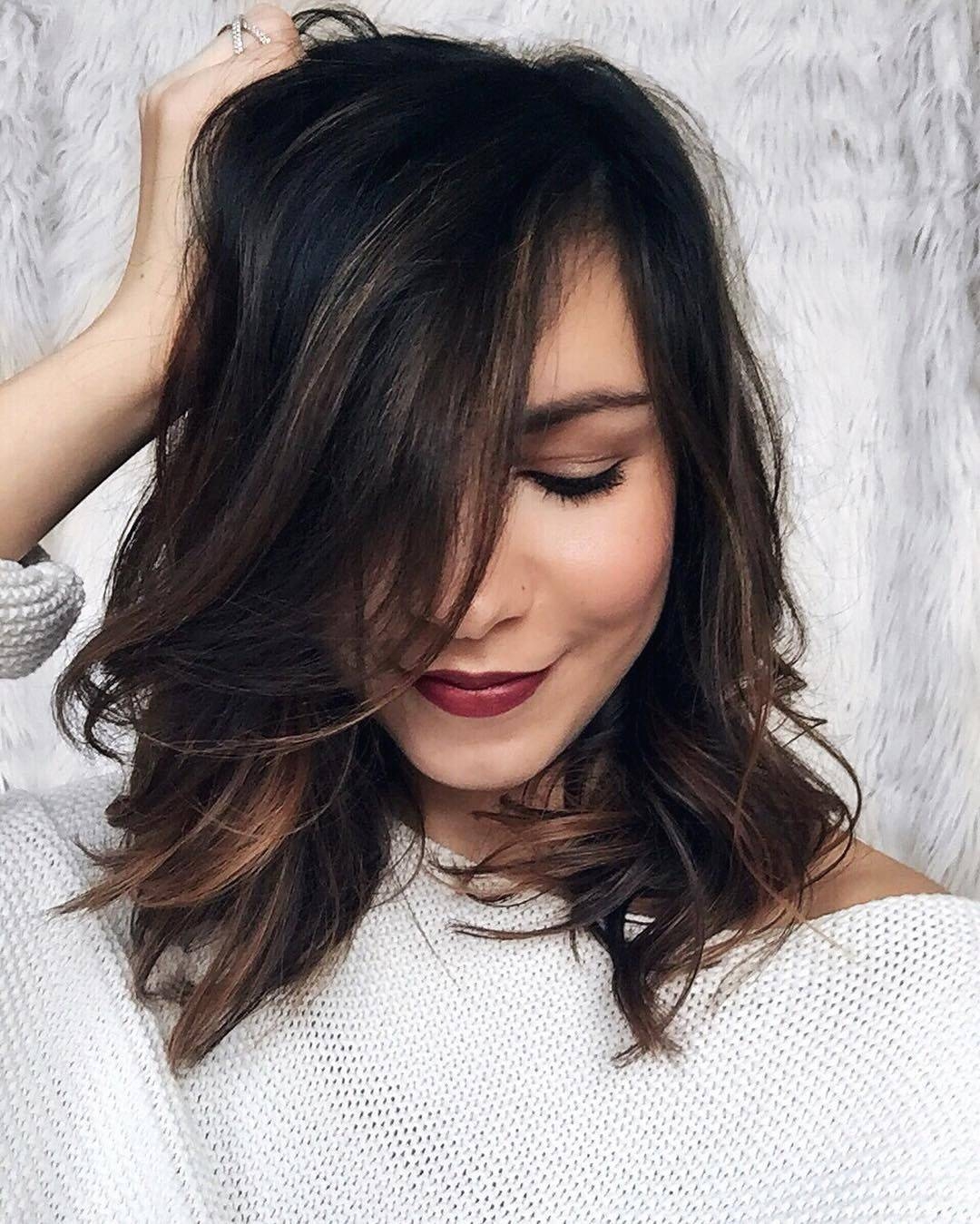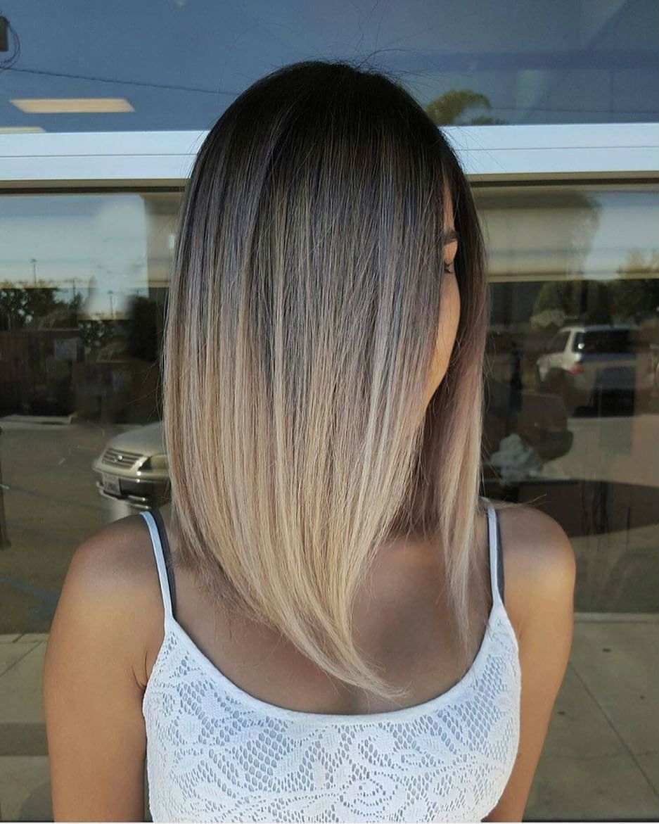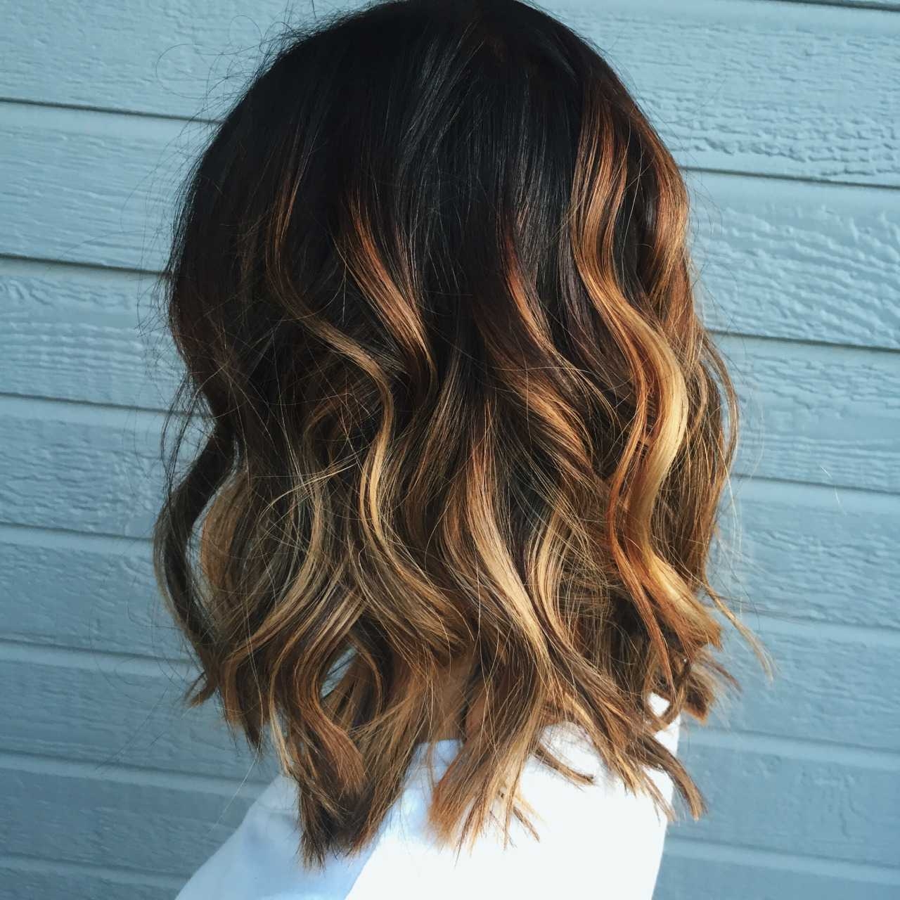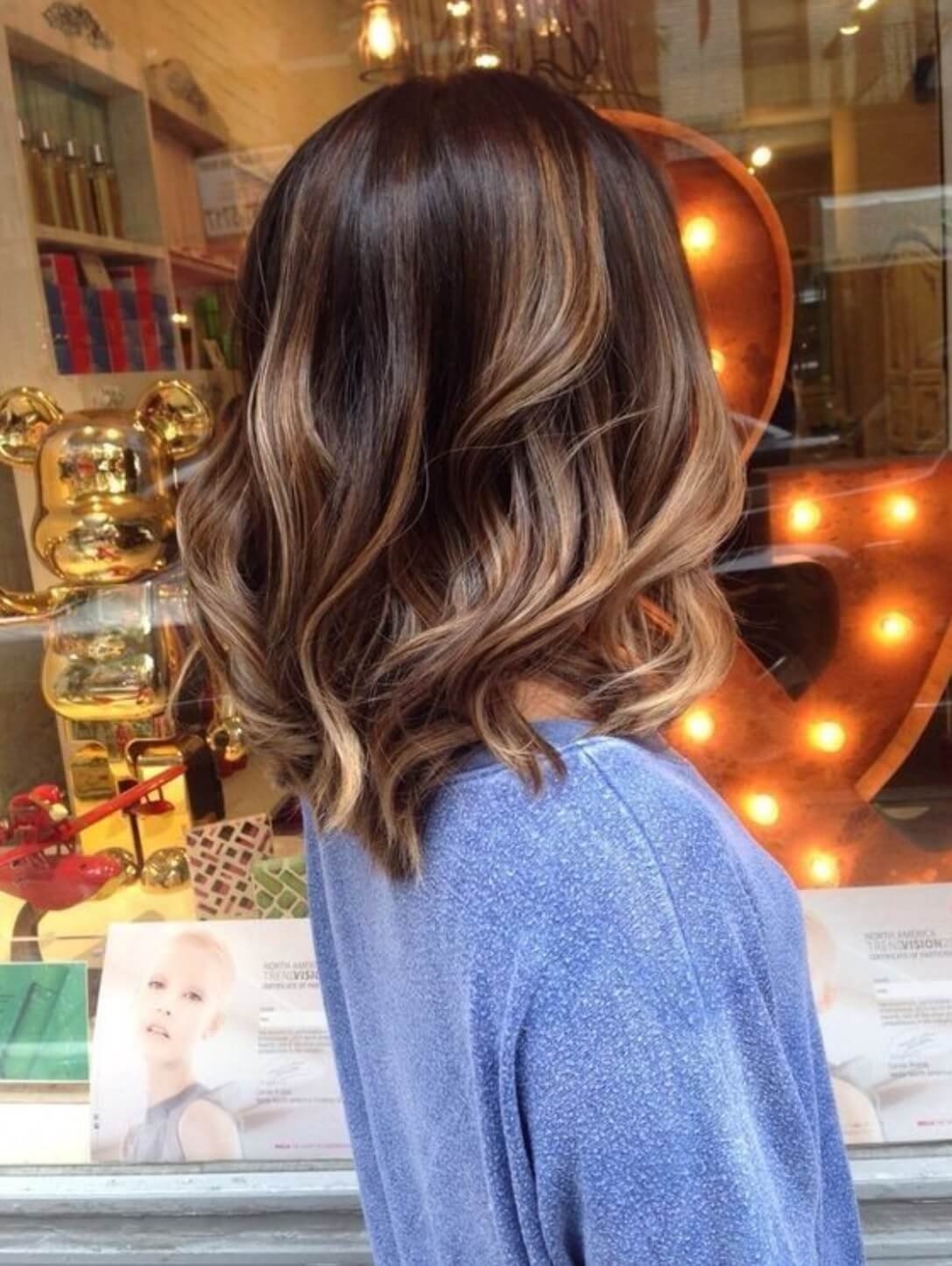 Балаяж на тёмные волосы средней длины прямые волосы