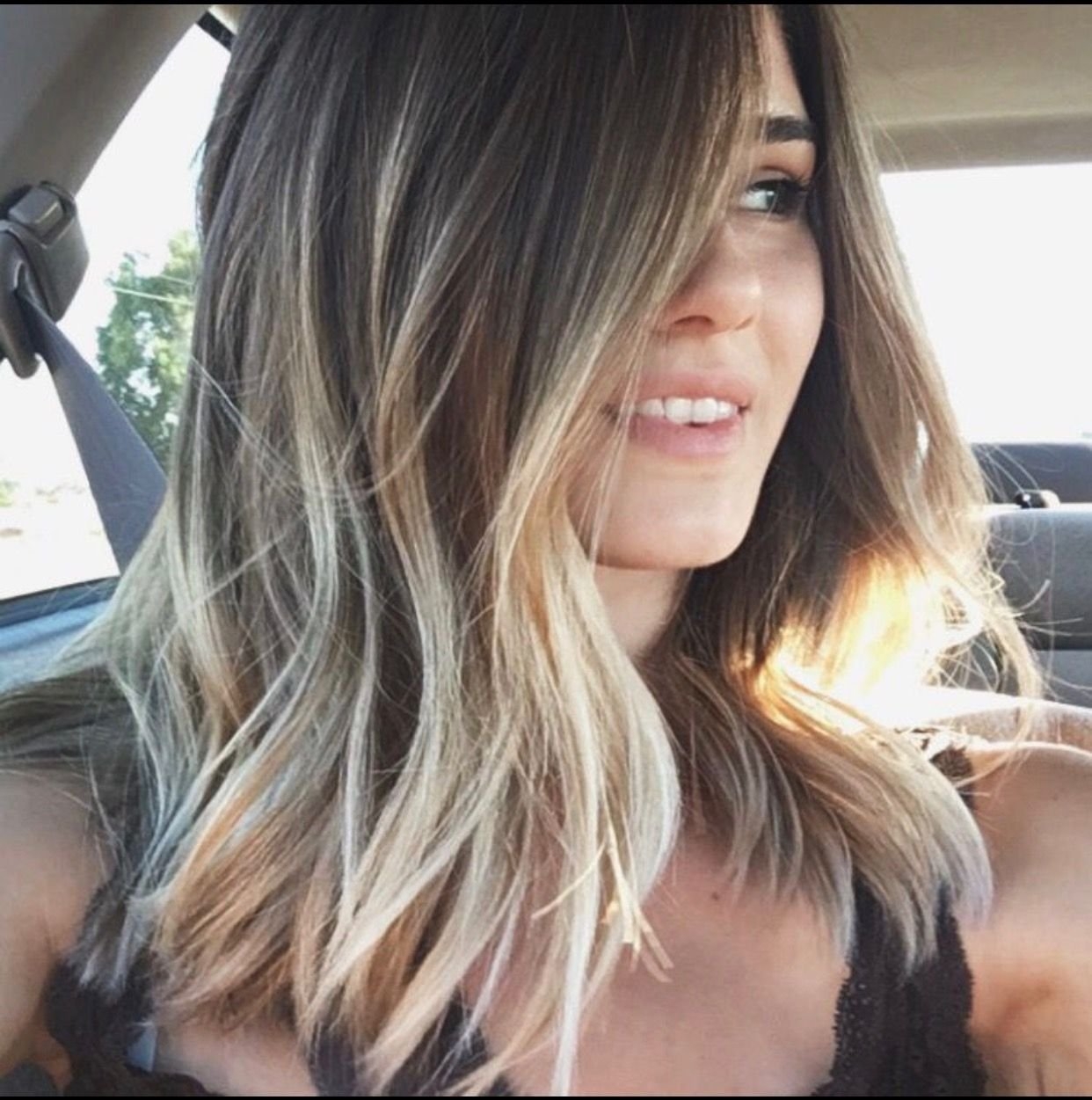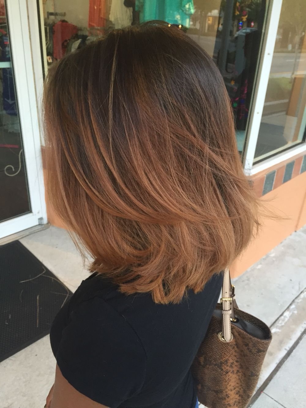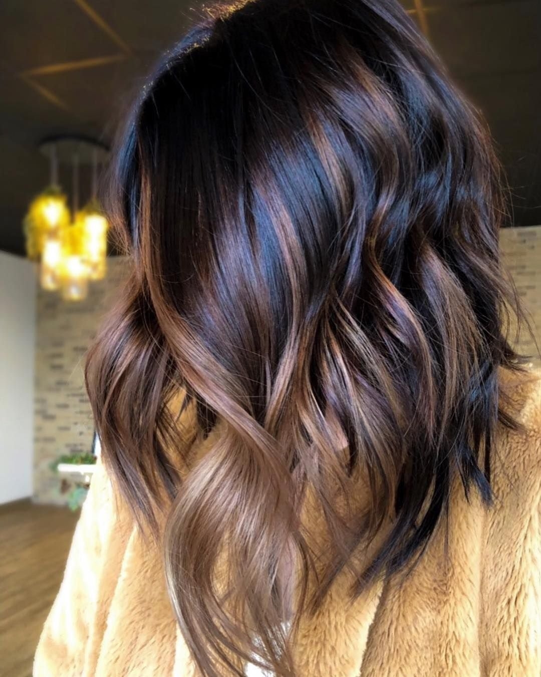 Балаяж на тёмные волосы средней длины прямые волосы