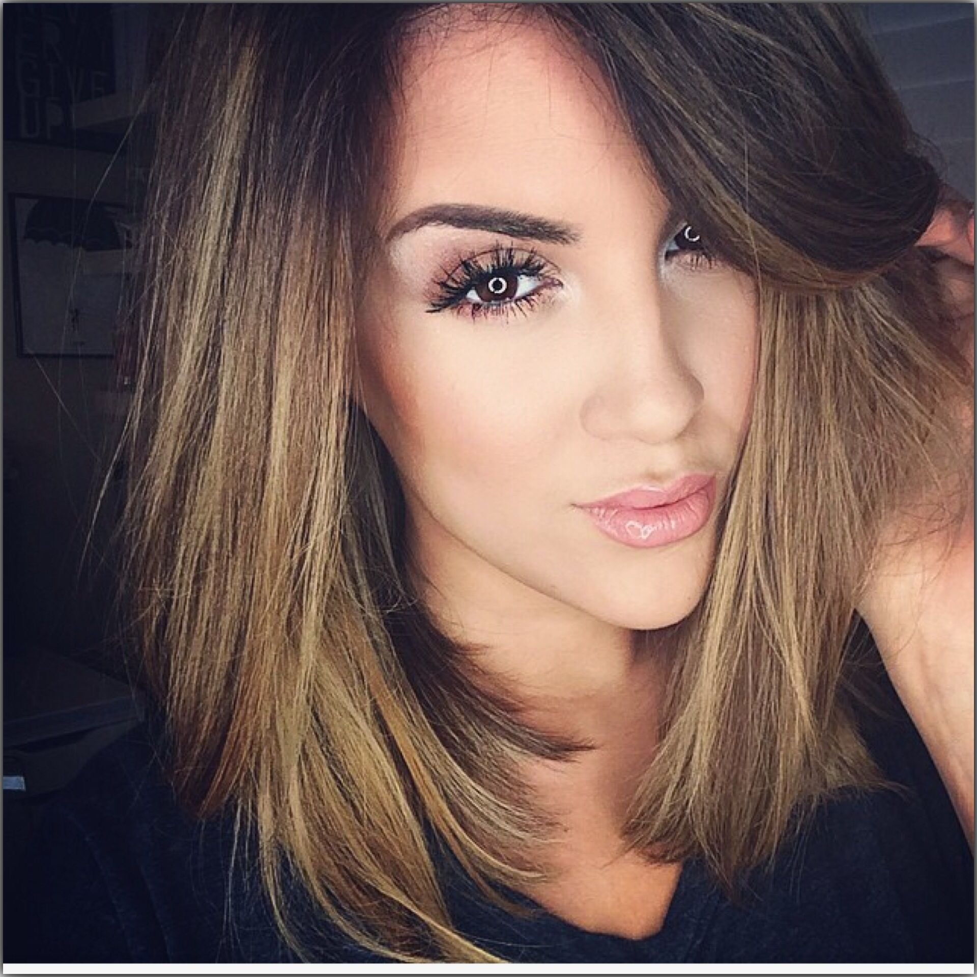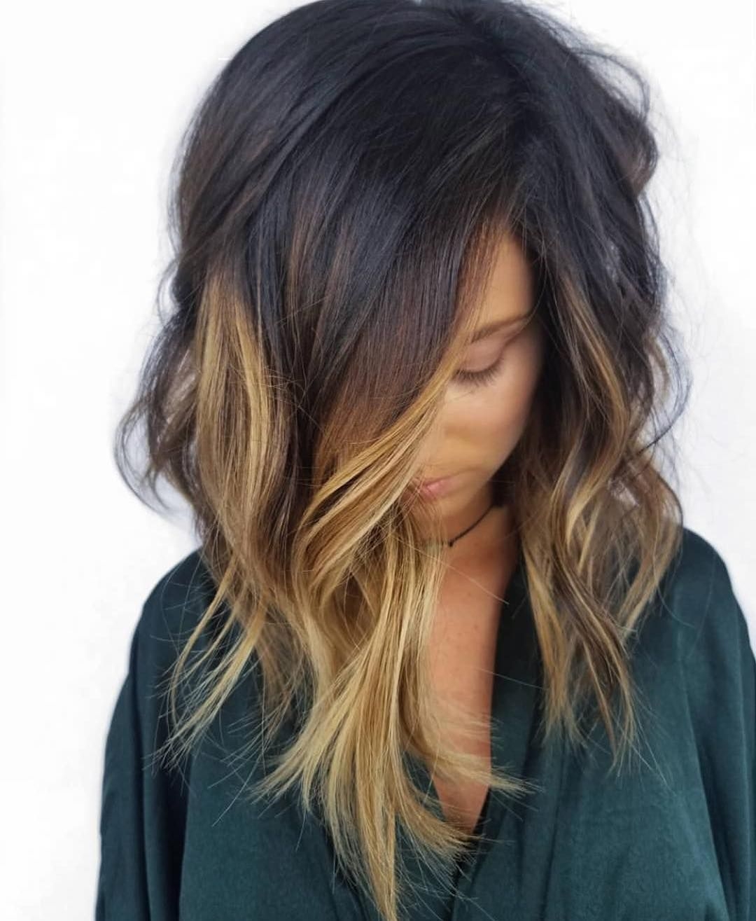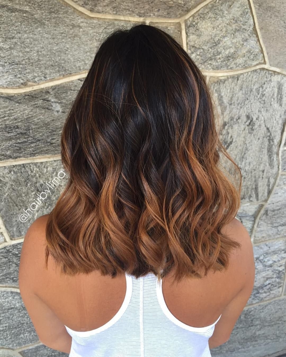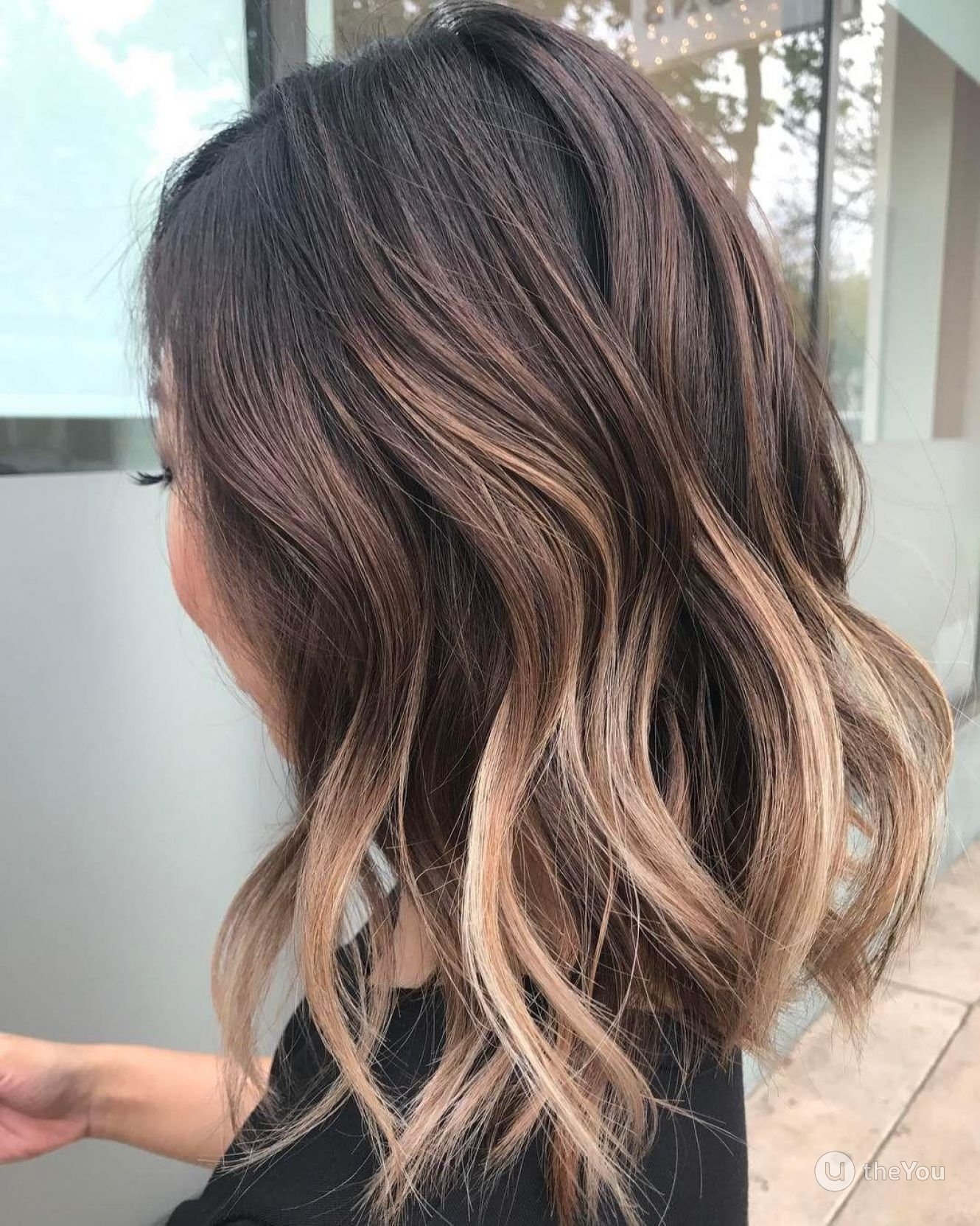 Балаяж на тёмные волосы средней длины прямые волосы