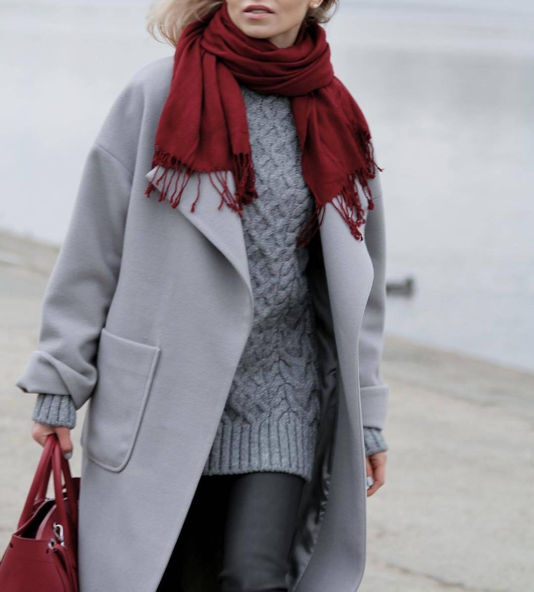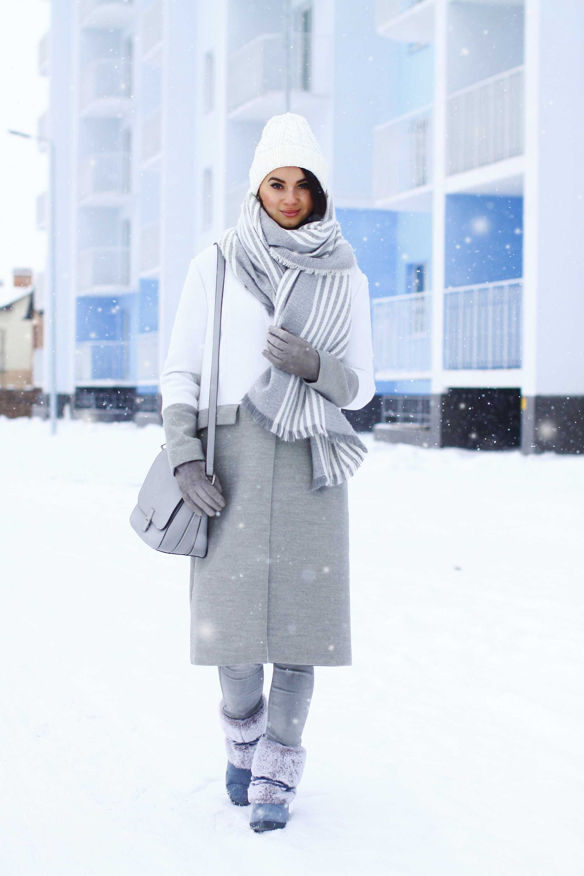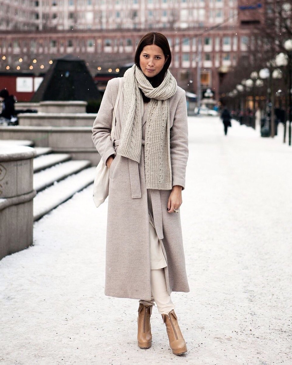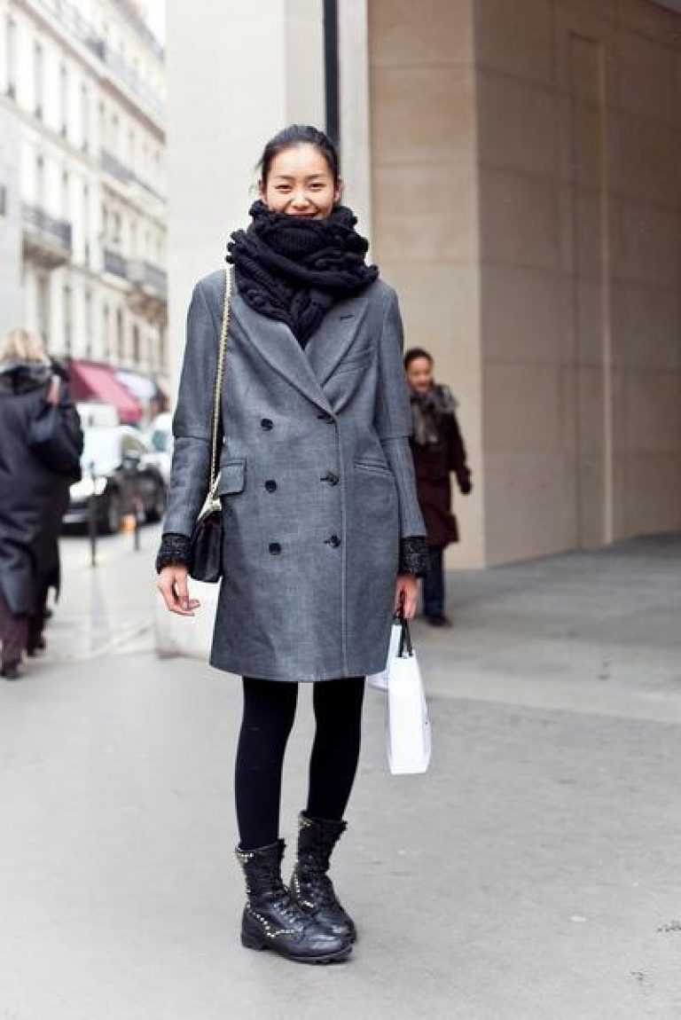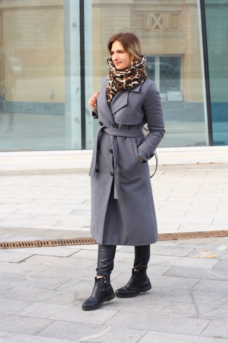 Серое пальто и серый шарф