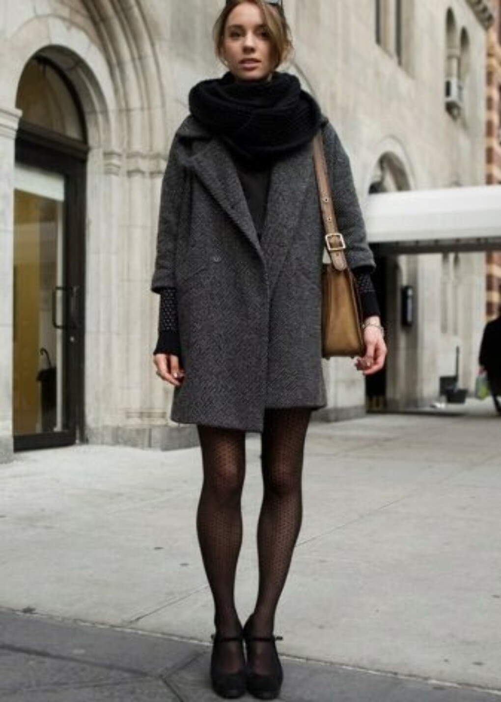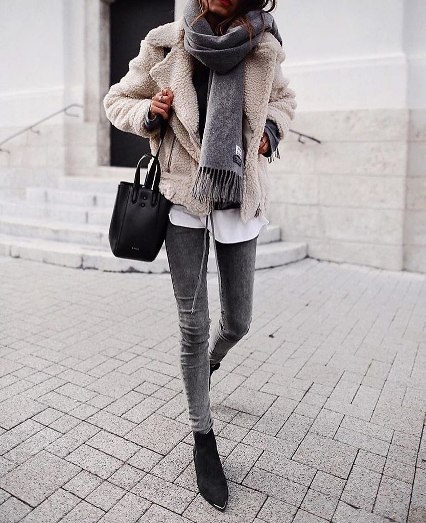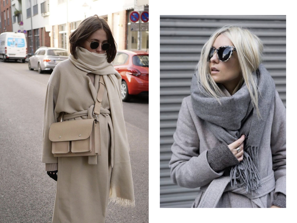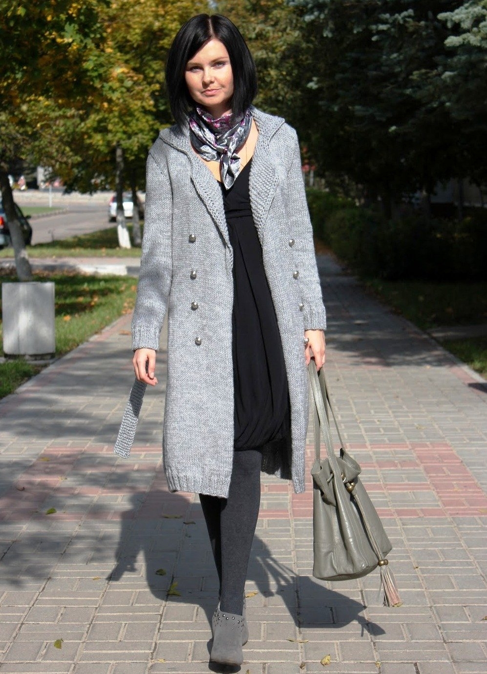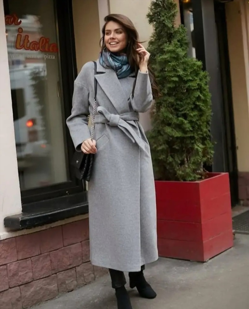 Серое пальто и серый шарф