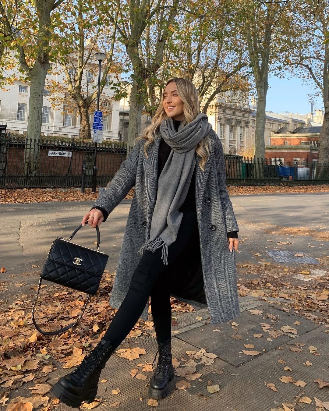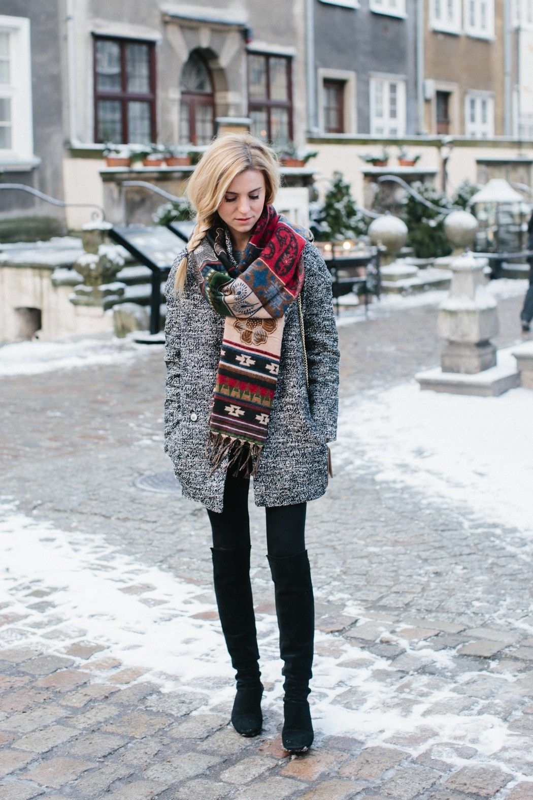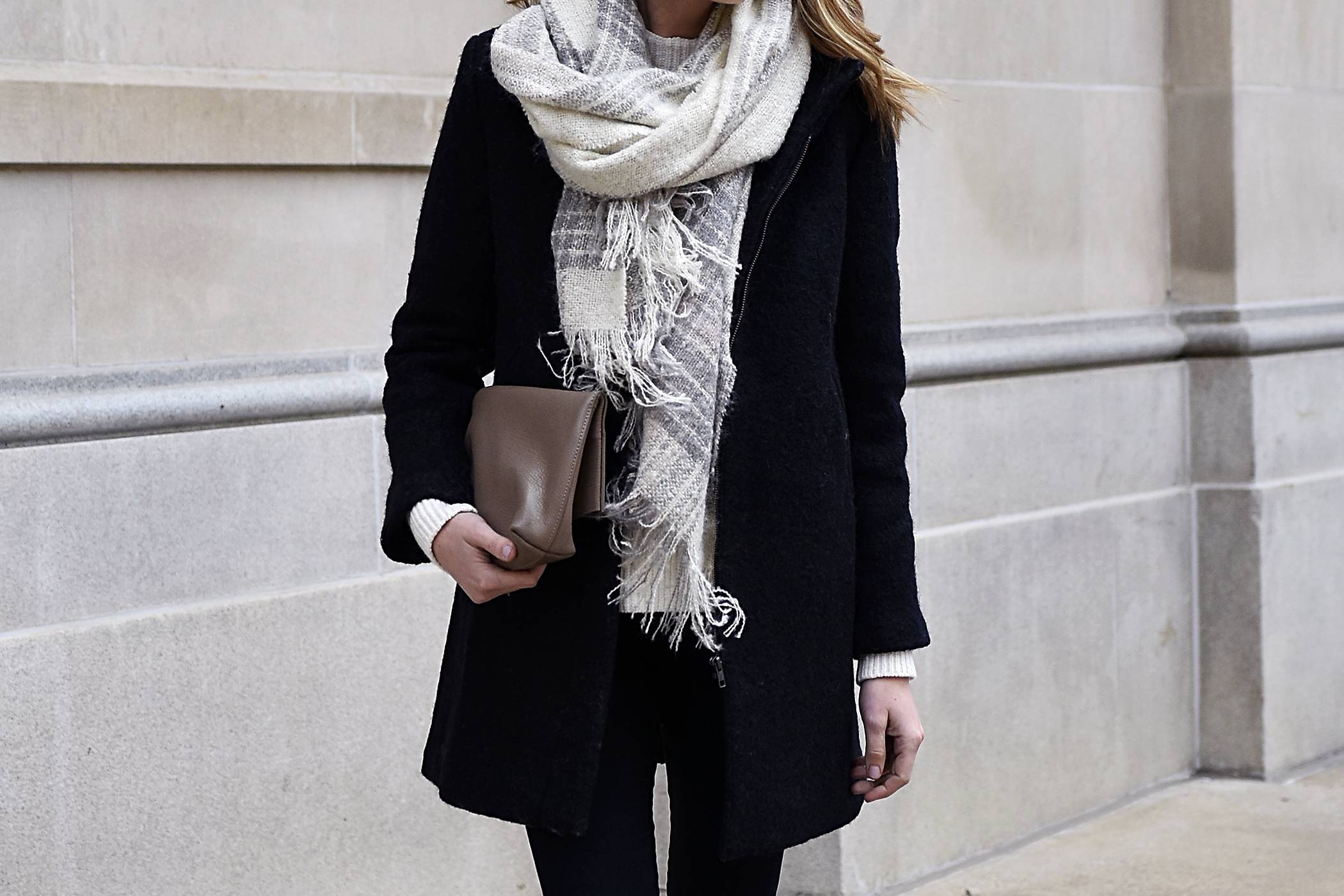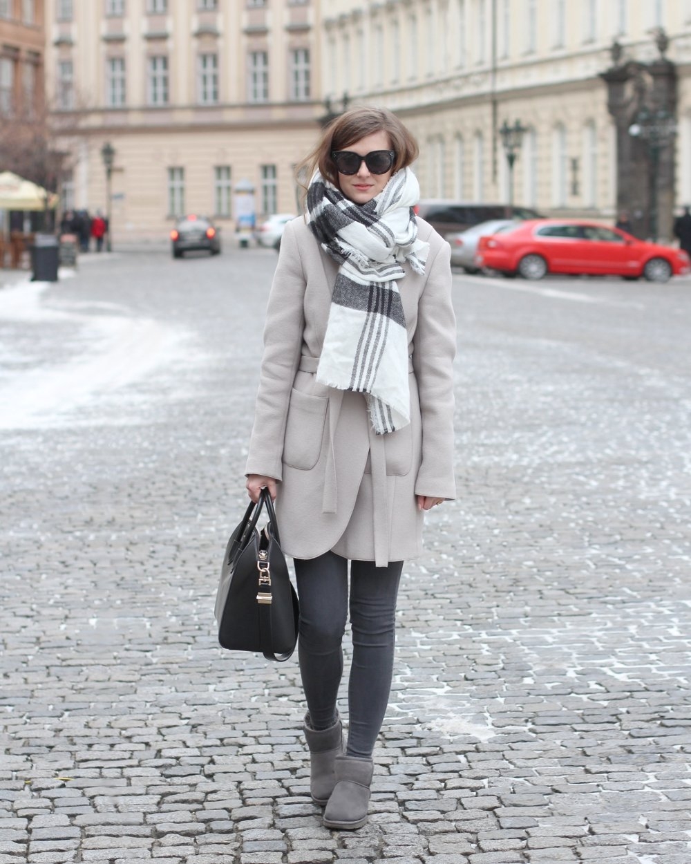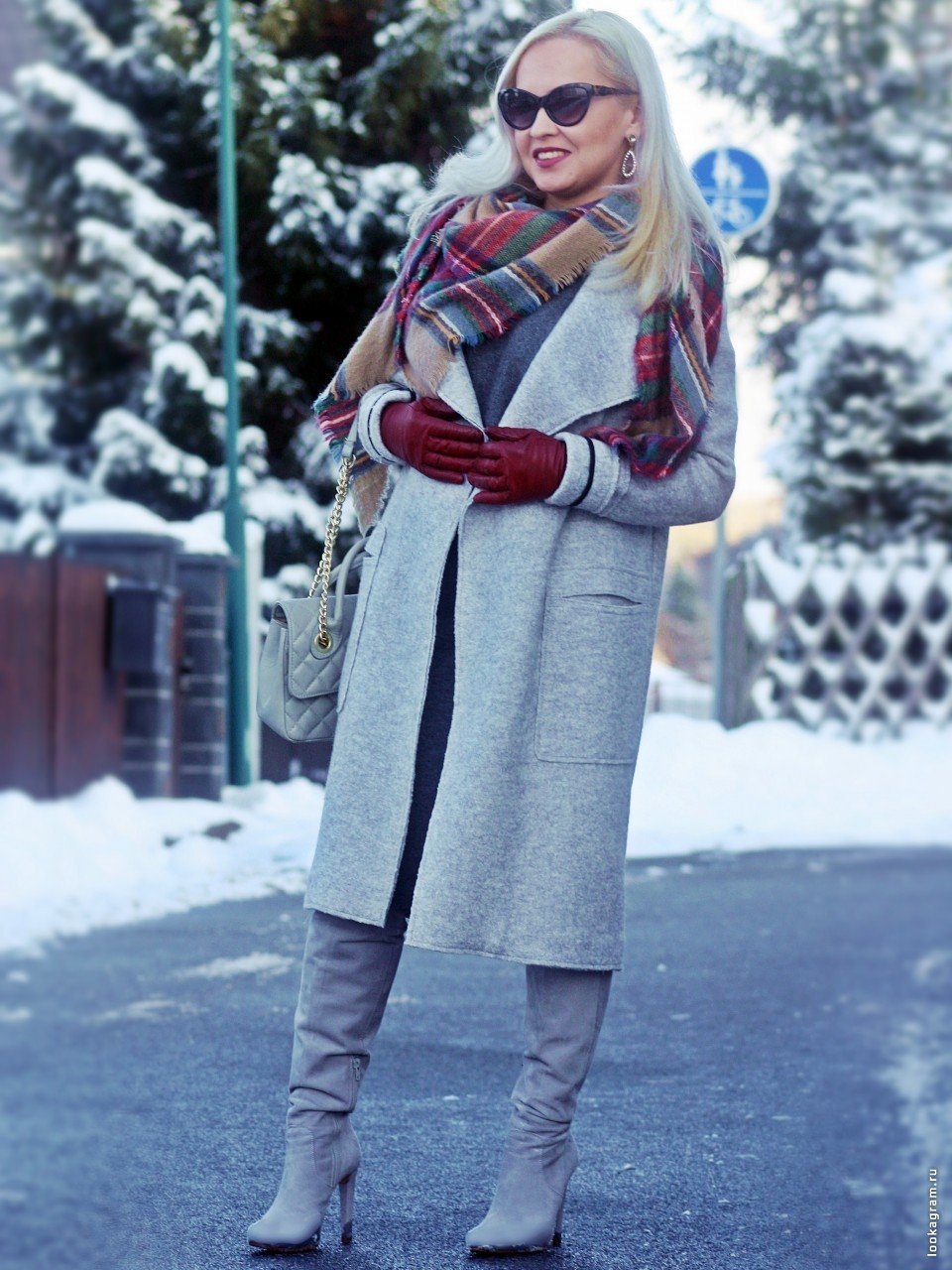 Серое пальто и серый шарф