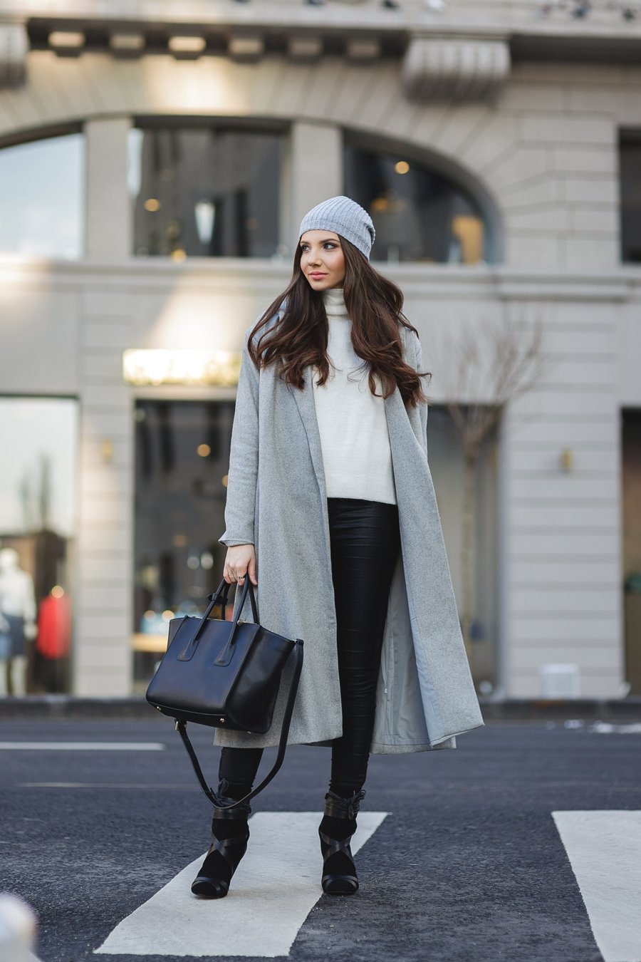 Сочетание серого пальто