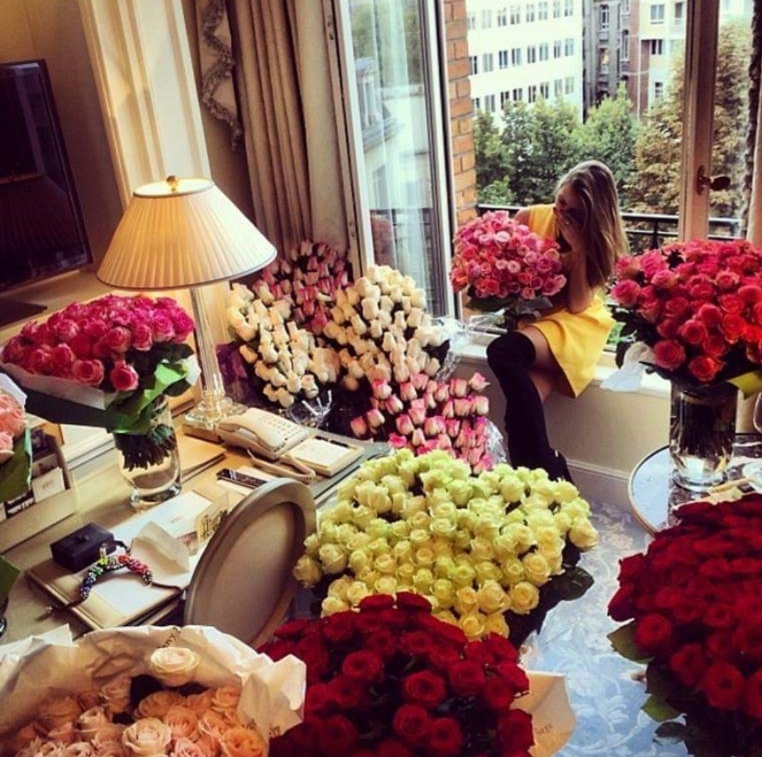 Девушка и много цветов