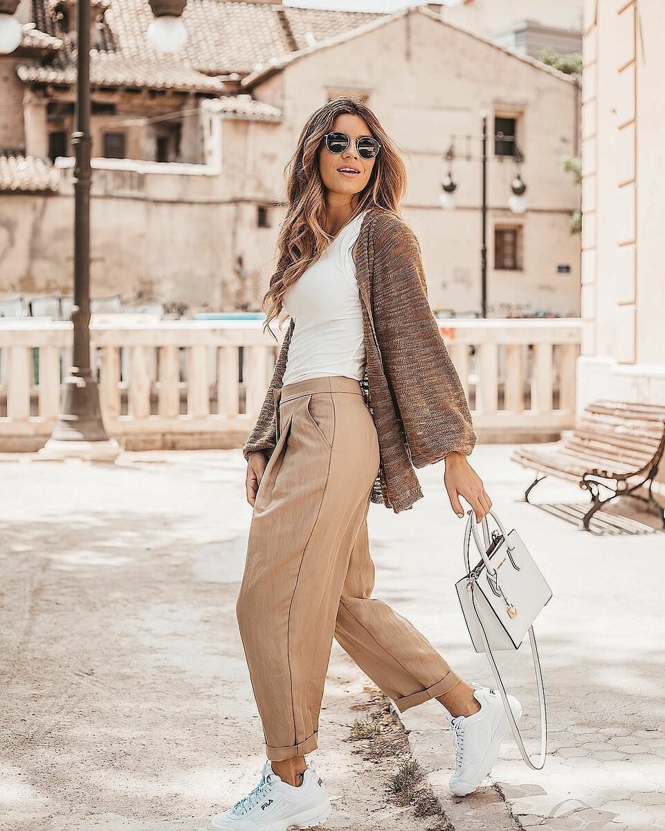 Луки с бежевыми брюками женские
