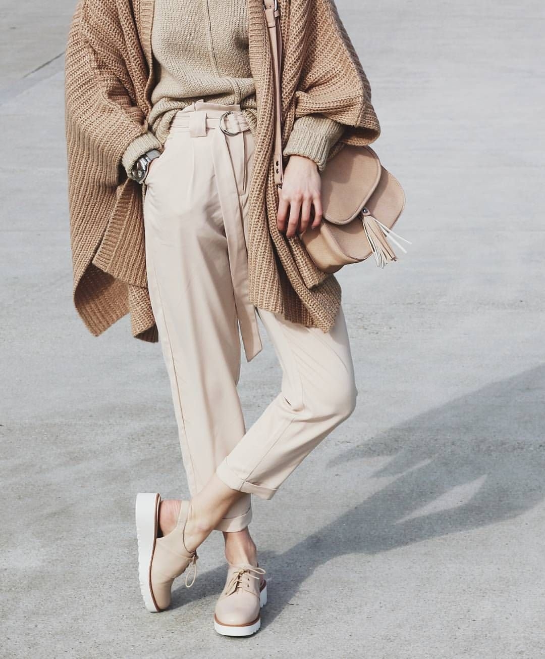 Бежевый лук в одежде
