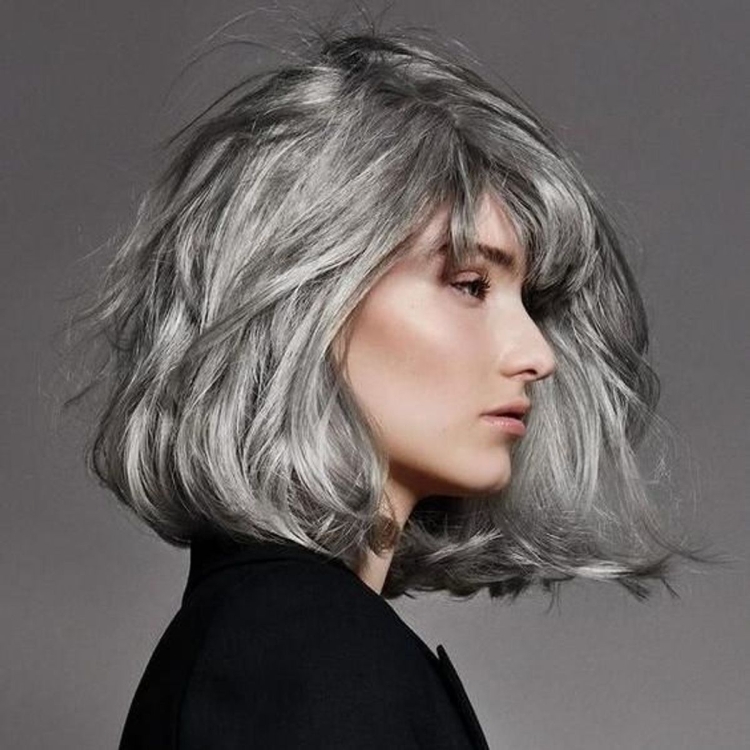 Окрашивание седых волос средней длины