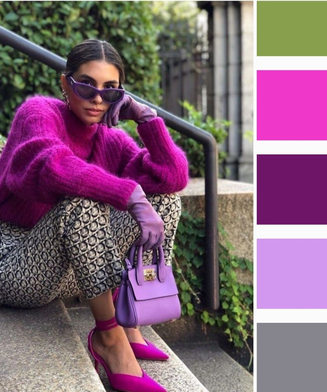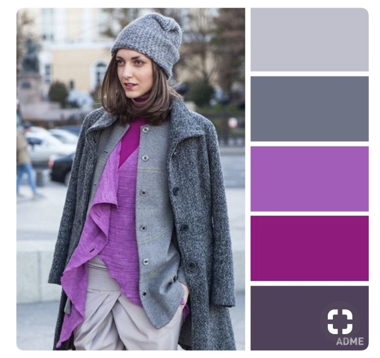Сочетание серого и лилового в одежде