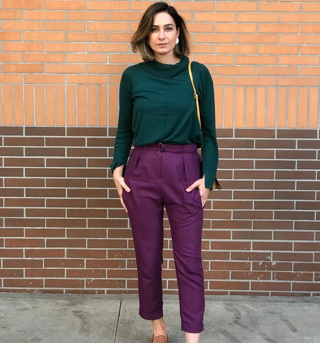 Образ с фиолетовыми брюками